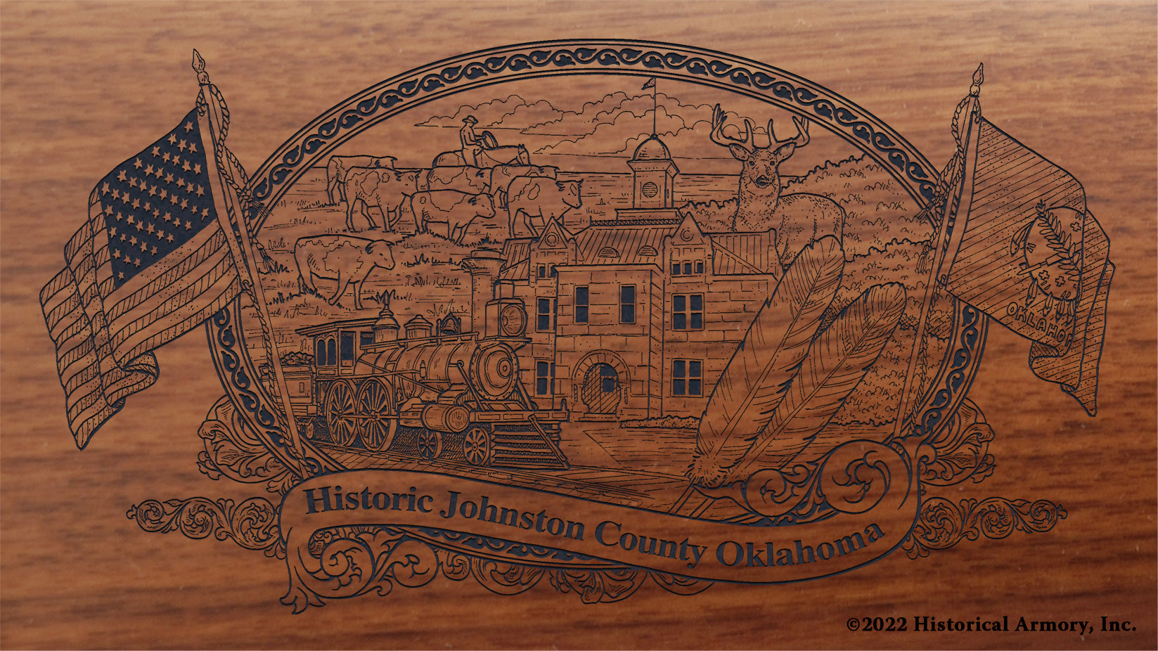 In honor of your county's rich historical legacy, Historical Armory is proud to present the Johnston County Oklahoma Limited Historical Edition Rifle. Produced on the affordable, American-made Henry rifles, the Johnston County Oklahoma Limited Historical Edition rifle combines meticulous research, original artwork, and finely detailed engraving to celebrate the history of Johnston County. There will only be 25 Johnston County Oklahoma rifle sets ever produced by Historical Armory. Purchase each model separately or all available rifle models together for a complete limited edition set.