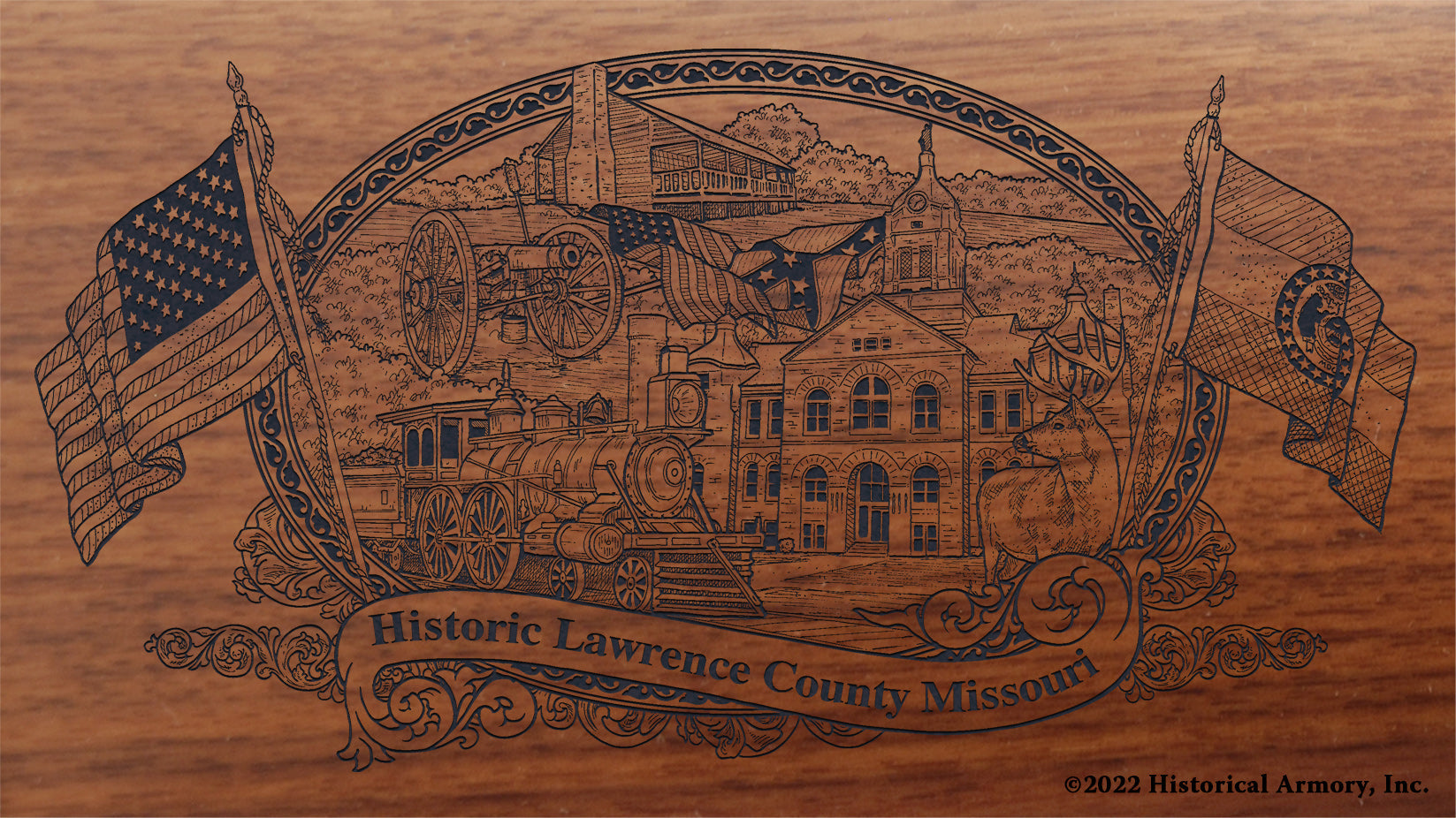 In honor of your county's rich historical legacy, Historical Armory is proud to present the Lawrence County Missouri Limited Historical Edition Rifle. Produced on the affordable, American-made Henry rifles, the Lawrence County Missouri Limited Historical Edition rifle combines meticulous research, original artwork, and finely detailed engraving to celebrate the history of Lawrence County. There will only be 25 Lawrence County Missouri rifle sets ever produced by Historical Armory. Purchase each model separately or all available rifle models together for a complete limited edition set.