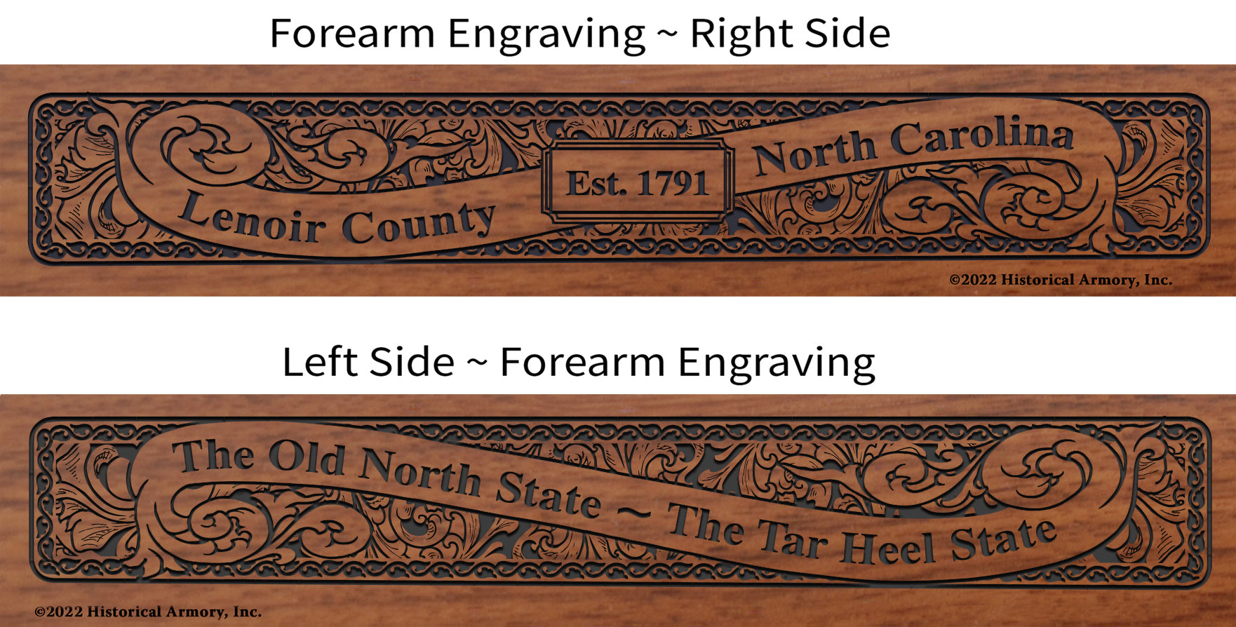 Renowned for their durability and solid construction, Henry rifles offer you a welcome shelter from the planned mechanical obsolescence so common in modern products these days. Well-maintained, they will continue to perform as designed for generations to come, perhaps even one day becoming a treasured family heirloom for your descendants. Start your own tradition of lasting permanence today with the Lenoir County North Carolina Engraved Rifle, available only from Historical Armory!
