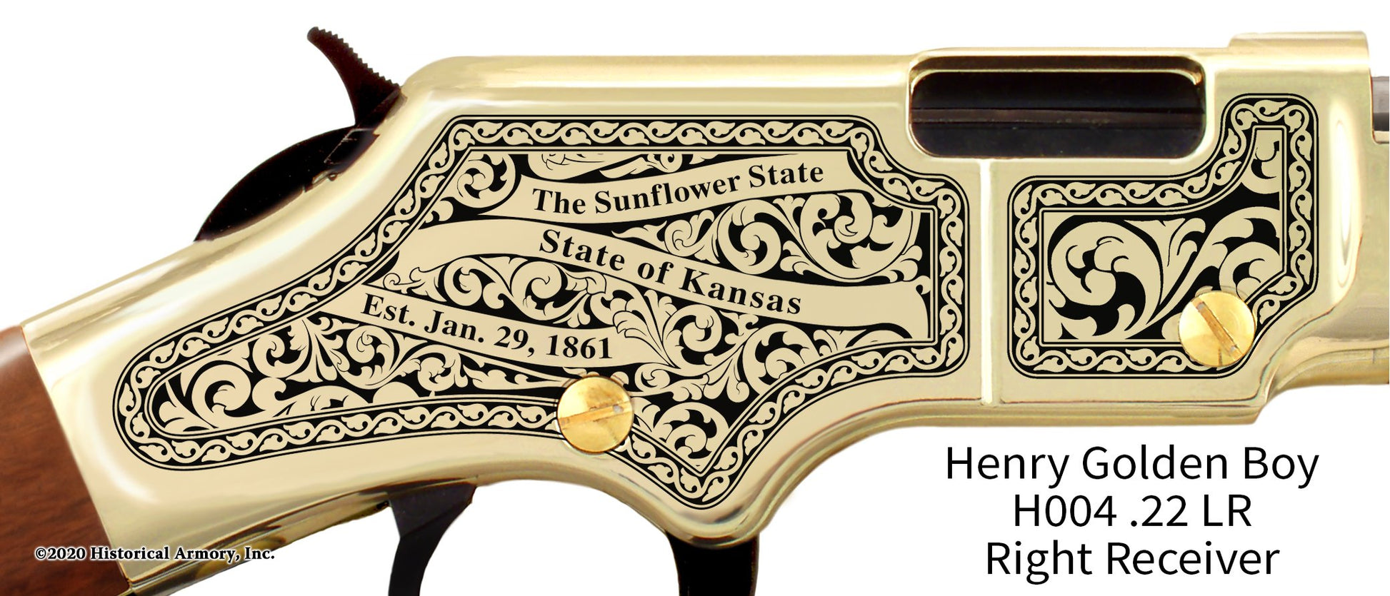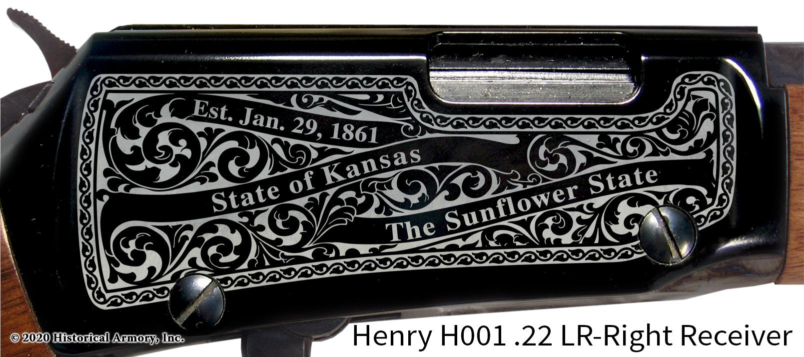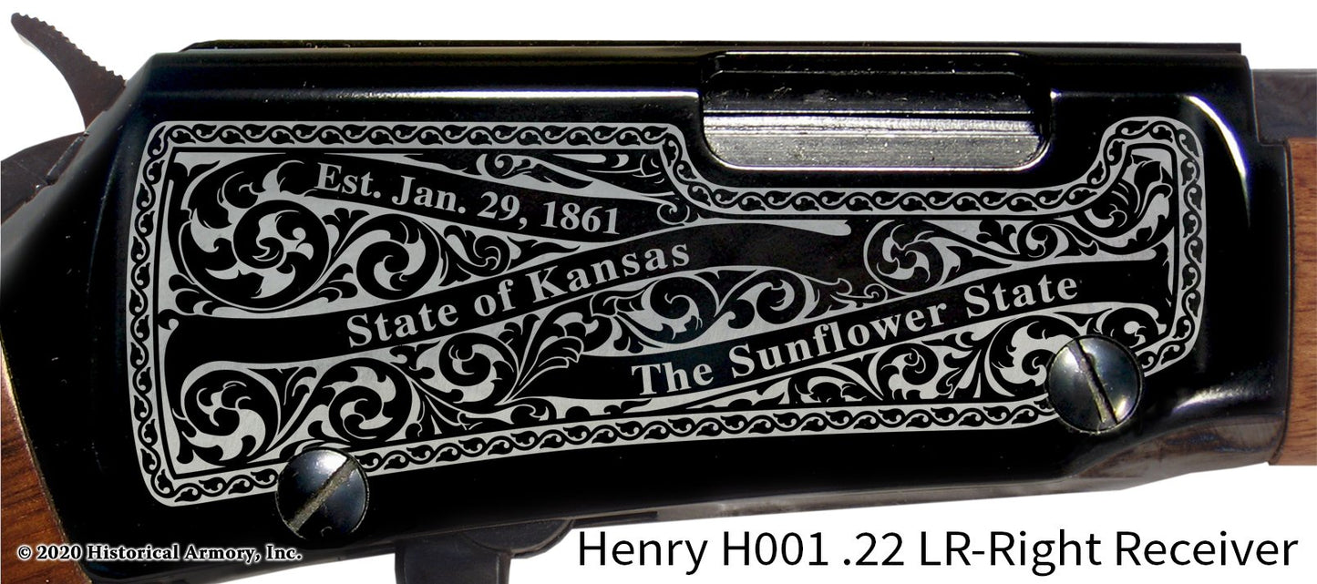 Renowned for their durability and solid construction, Henry rifles offer you a welcome shelter from the planned mechanical obsolescence so common in modern products these days. Well-maintained, they will continue to perform as designed for generations to come, perhaps even one day becoming a treasured family heirloom for your descendants. Start your own tradition of lasting permanence today with the Linn County Kansas Engraved Rifle, available only from Historical Armory!