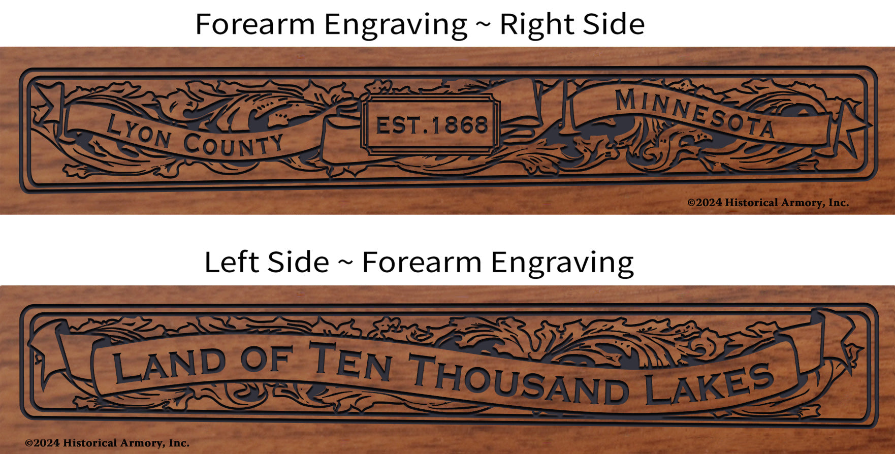 In honor of your county's rich historical legacy, Historical Armory is proud to present the Lyon County Minnesota Limited Historical Edition Rifle. Produced on the affordable, American-made Henry .22 LR rifle (Model H001 & H004) and .30-30 (Model H009BG), the Lyon County Minnesota Limited Historical Edition rifle combines meticulous research, original artwork, and finely detailed engraving to celebrate the history of Lyon County. There will only be 50 Lyon County Minnesota rifle sets ever produced by Historical Armory. Purchase each model separately or all available rifle models together for a complete limited edition set.