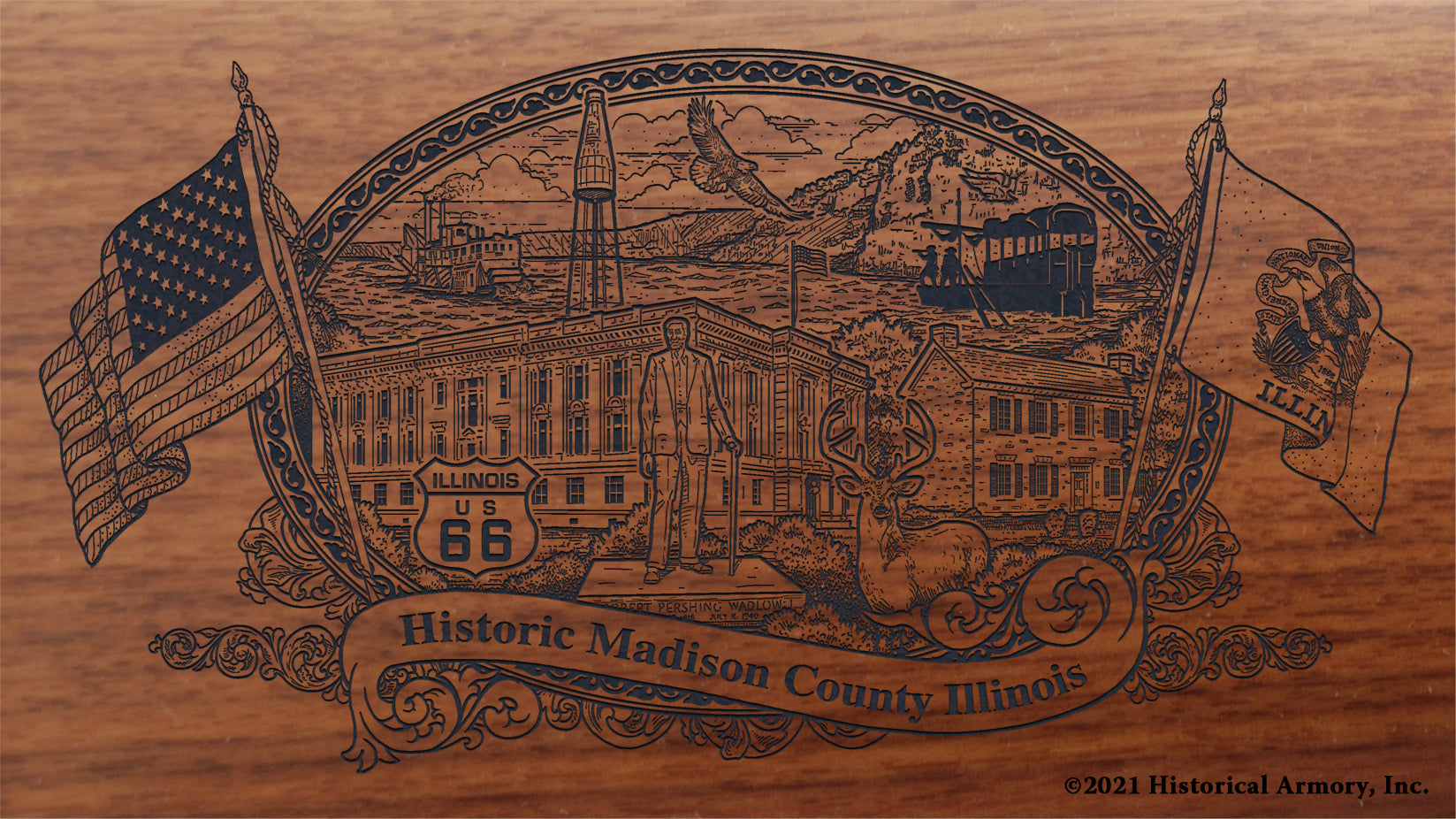 In honor of your county's rich historical legacy, Historical Armory is proud to present the Madison County Illinois Limited Historical Edition Rifle. Produced on the affordable, American-made Henry .22 LR rifle (Model H001 & H004) and .30-30 (Model H009BG), the Madison County Illinois Limited Historical Edition rifle combines meticulous research, original artwork, and finely detailed engraving to celebrate the history of Madison County. There will only be 50 Madison County Illinois rifle sets ever produced by Historical Armory. Purchase each model separately or all available rifle models together for a complete limited edition set.
