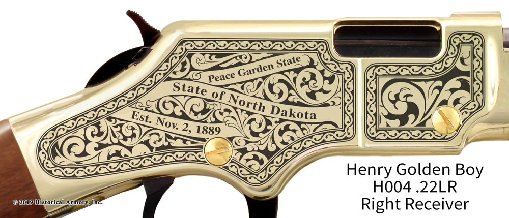 Renowned for their durability and solid construction, Henry rifles offer you a welcome shelter from the planned mechanical obsolescence so common in modern products these days. Well-maintained, they will continue to perform as designed for generations to come, perhaps even one day becoming a treasured family heirloom for your descendants. Start your own tradition of lasting permanence today with the McLean County North Dakota Engraved Rifle, available only from Historical Armory!