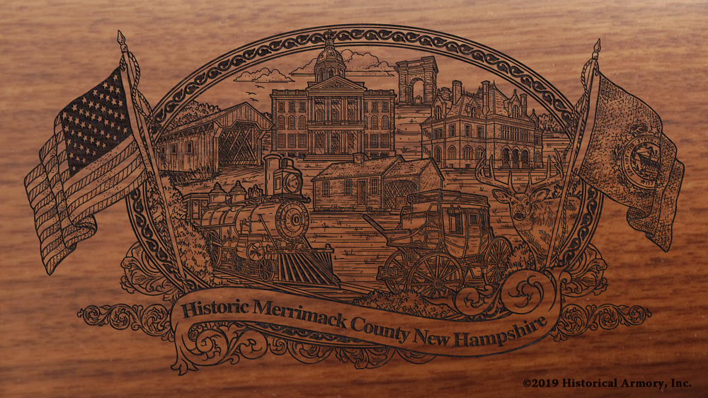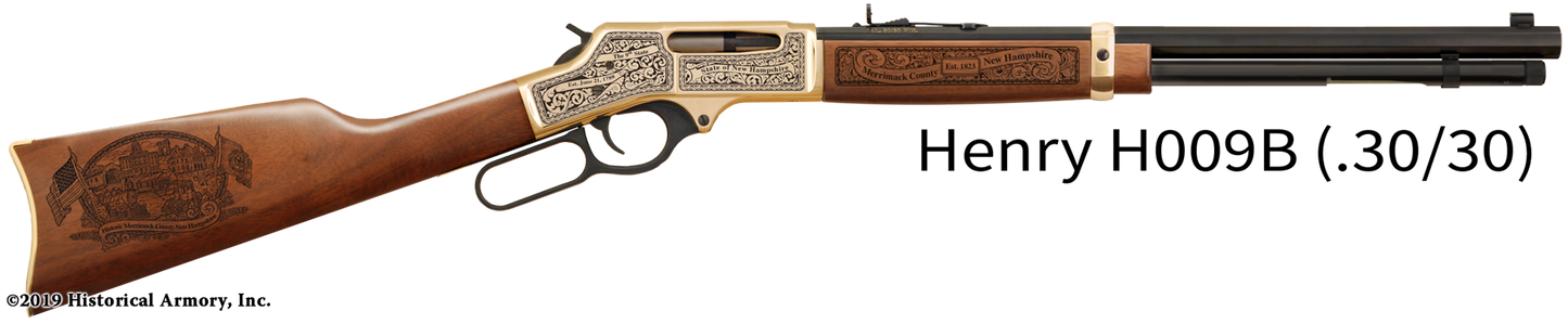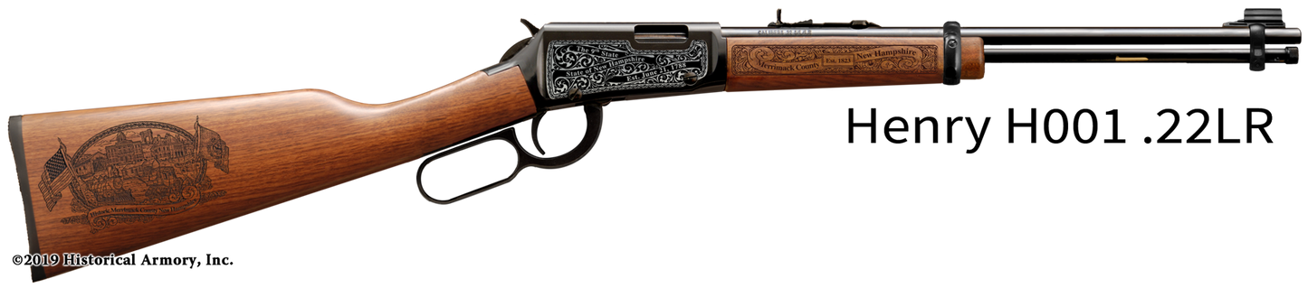 In honor of your county's rich historical legacy, Historical Armory is proud to present the Merrimack County New Hampshire Limited Historical Edition Rifle. Produced on the affordable, American-made Henry .22 LR rifle (Model H001 & H004) and .30-30 (Model H009BG), the Merrimack County New Hampshire Limited Historical Edition rifle combines meticulous research, original artwork, and finely detailed engraving to celebrate the history of Merrimack County. There will only be 50 Merrimack County New Hampshire rifle sets ever produced by Historical Armory. Purchase each model separately or all available rifle models together for a complete limited edition set.