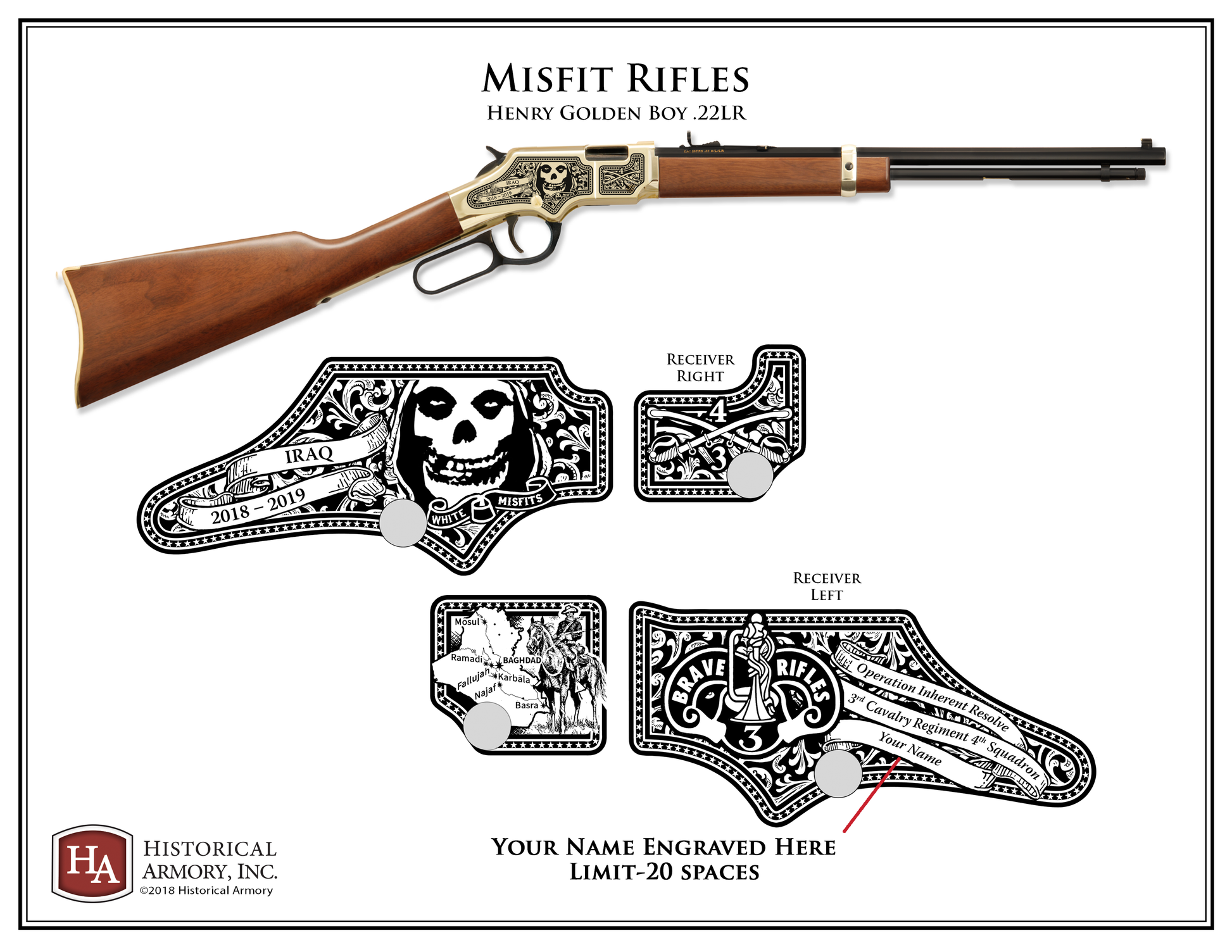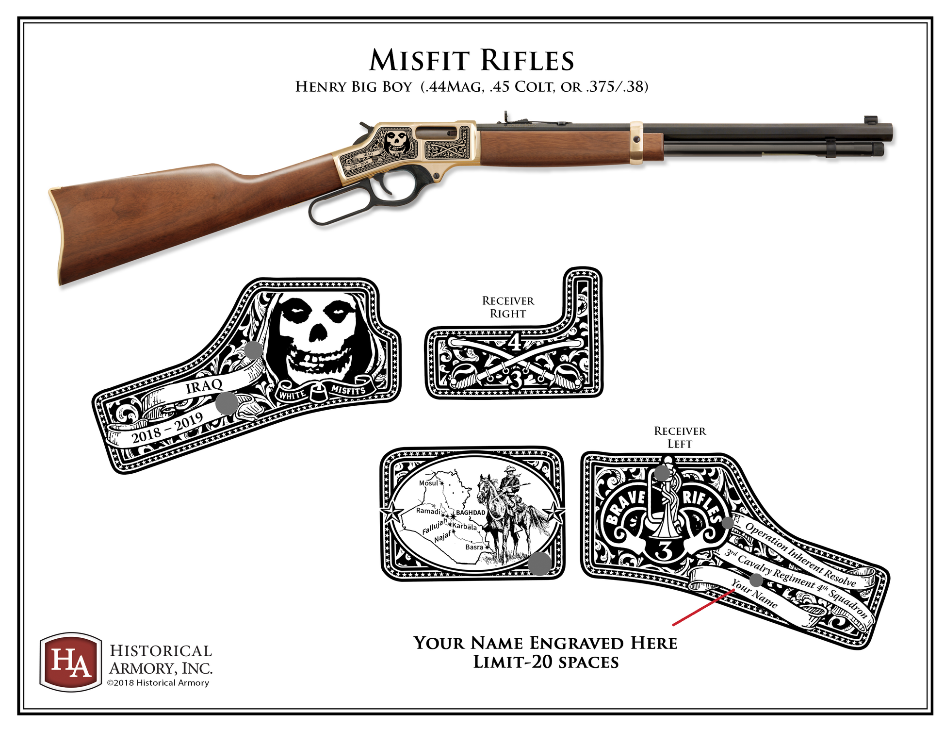 In honor of you who protect our nation and serve with pride, Historical Armory, Inc. is extremely proud to present the Misfit Rifles Edition. This edition is available on the Henry Golden Boy H004 (.22LR), and Big Boy Classic H006, H006C, H006M (.44Mag, .45Colt, .357/.38).