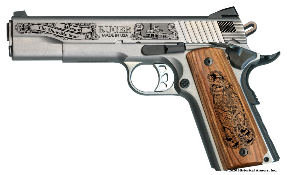 In honor of your state's rich historical legacy, Historical Armory is proud to present the Missouri State Pride 1911 Limited Edition! The Missouri State Pride 1911 Limited Edition pistol combines meticulous research, original artwork, and finely detailed engraving to celebrate the history of Missouri. There will only be 100 Missouri State Pride 1911 pistols produced by Historical Armory!