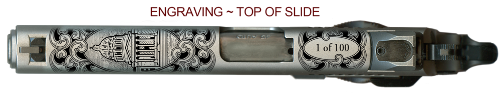 Each pistol is individually numbered on the top side of the slide: 1 of 100, 2 of 100 and so on.