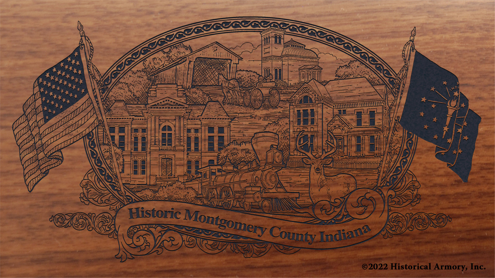 In honor of your county's rich historical legacy, Historical Armory is proud to present the Montgomery County Indiana Limited Historical Edition Rifle. Produced on the affordable, American-made Henry rifles, the Montgomery County Indiana Limited Historical Edition rifle combines meticulous research, original artwork, and finely detailed engraving to celebrate the history of Montgomery County. There will only be 50 Montgomery County Indiana rifle sets ever produced by Historical Armory. Purchase each model separately or all available rifle models together for a complete limited edition set.