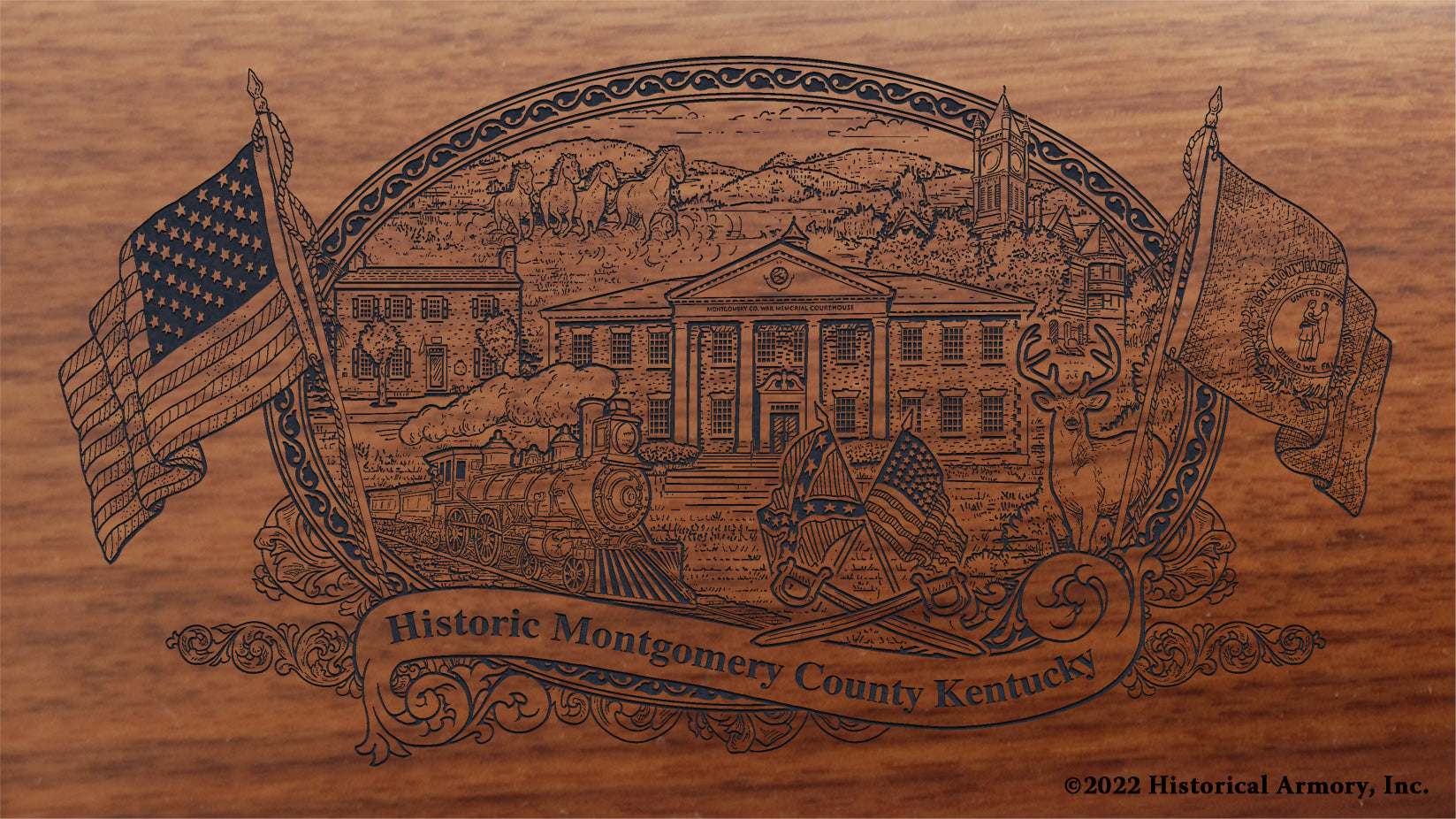 In honor of your county's rich historical legacy, Historical Armory is proud to present the Montgomery County Kentucky Limited Historical Edition Rifle. Produced on the affordable, American-made Henry rifles, the Montgomery County Kentucky Limited Historical Edition rifle combines meticulous research, original artwork, and finely detailed engraving to celebrate the history of Montgomery County. There will only be 50 Montgomery County Kentucky rifle sets ever produced by Historical Armory. Purchase each model separately or all available rifle models together for a complete limited edition set.