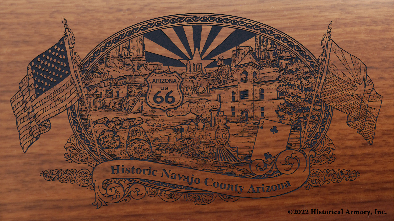In honor of your county's rich historical legacy, Historical Armory is proud to present the Navajo County Arizona Limited Historical Edition Rifle. Produced on the affordable, American-made Henry rifles, the Navajo County Arizona Limited Historical Edition rifle combines meticulous research, original artwork, and finely detailed engraving to celebrate the history of Navajo County. There will only be 50 Navajo County Arizona rifle sets ever produced by Historical Armory. Purchase each model separately or all available rifle models together for a complete limited edition set.