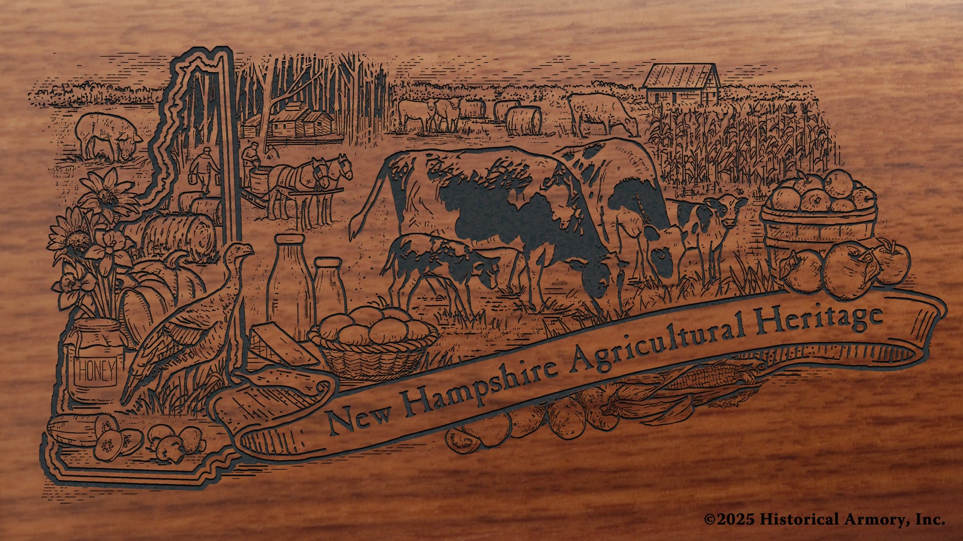 In honor of the dedicated farmers, who for generations have worked the rich soil of New Hampshire, Historical Armory is proud to present the New Hampshire Agricultural Heritage Limited Edition Rifle. Featuring original artwork and highly-detailed laser engraving, the New Hampshire Agricultural Heritage Limited Edition Rifle celebrates the enduring historical legacy of agriculture in New Hampshire.