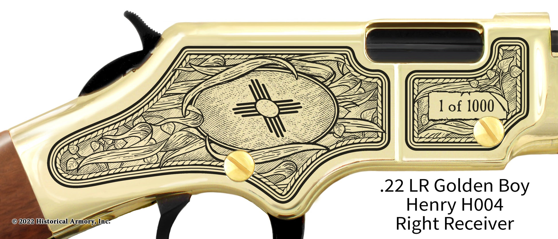 The New Mexico Agricultural Heritage Limited Edition Rifle is available on the affordable, American-made Henry .22LR (H001), Golden Boy (H004), Big Boy (H006G, H006GC, or H006GM), and .30-30 (H009BG) models. Each fully functional rifle is individually numbered and includes space on the American walnut buttstock for custom personalization, providing a unique opportunity to create your own treasured family heirloom that will be passed down for generations. Purchase the H001, H004, H006G (caliber of your choice), or H009BG separately, or all the rifles together for a complete limited edition set. Perfect for birthdays, holidays, or as a retirement gift honoring a lifetime spent working to provide for our families.