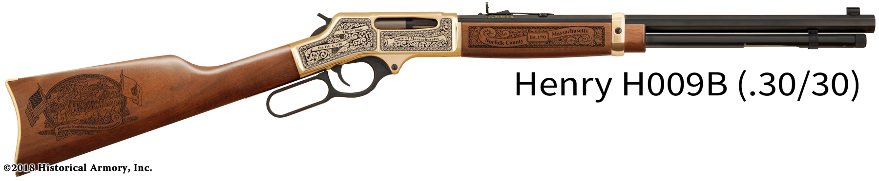 Renowned for their durability and solid construction, Henry rifles offer you a welcome shelter from the planned mechanical obsolescence so common in modern products these days. Well-maintained, they will continue to perform as designed for generations to come, perhaps even one day becoming a treasured family heirloom for your descendants. Start your own tradition of lasting permanence today with the Norfolk County Massachusetts Engraved Rifle, available only from Historical Armory!