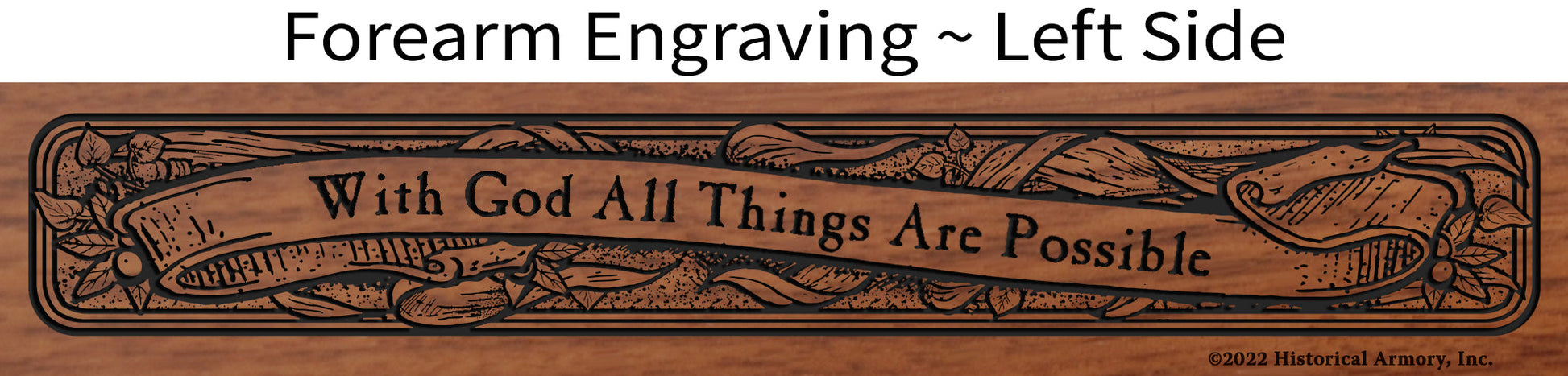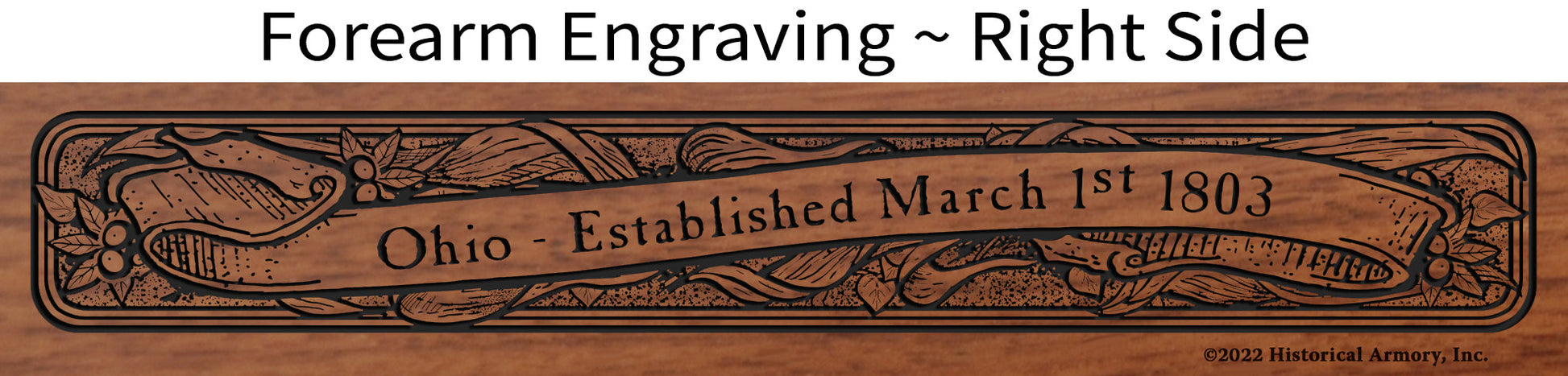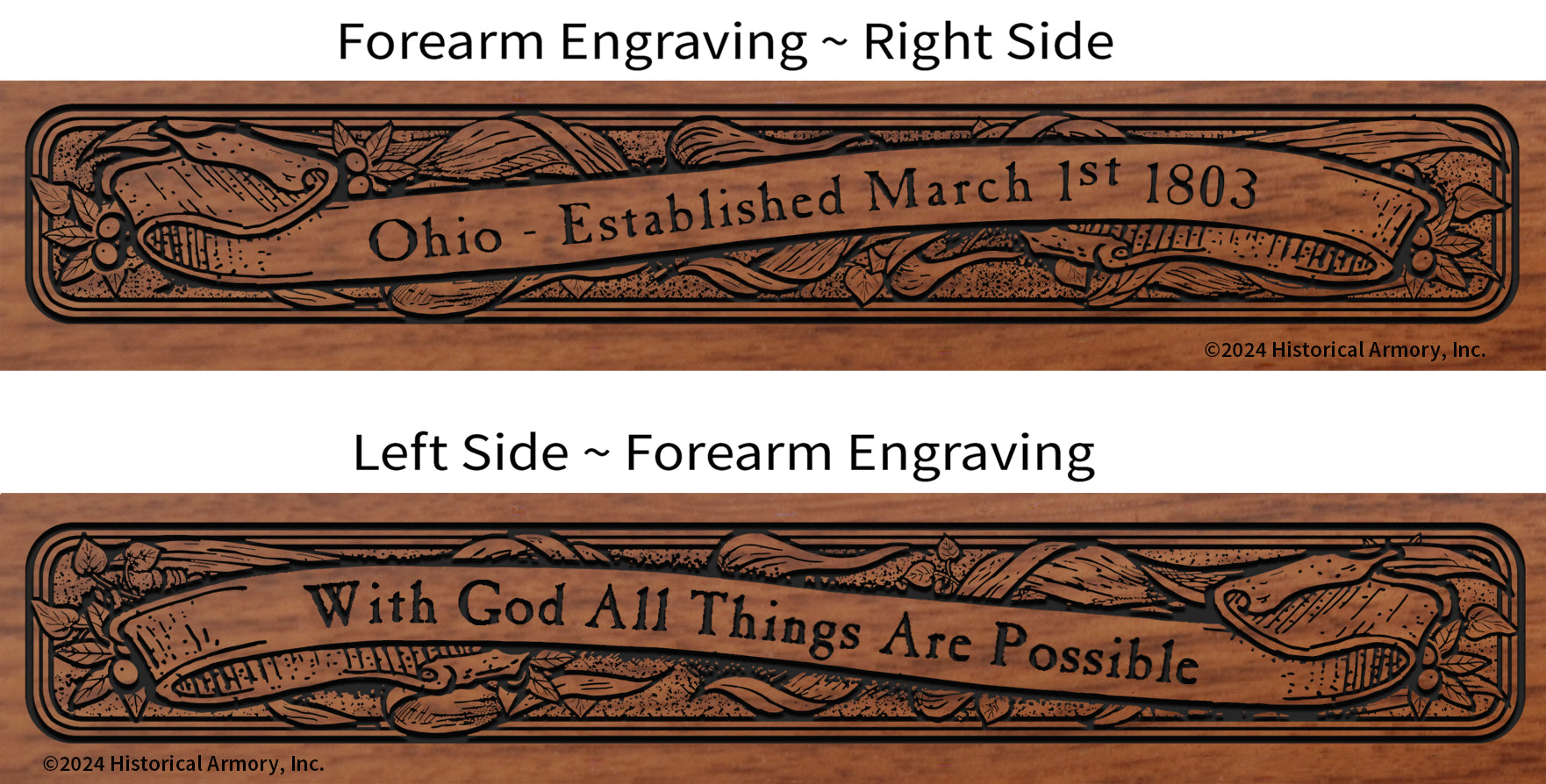 Detailed engraving on both sides of the American walnut forearm, with the name and establishment date of your state on the right side and your state nickname on the left side.