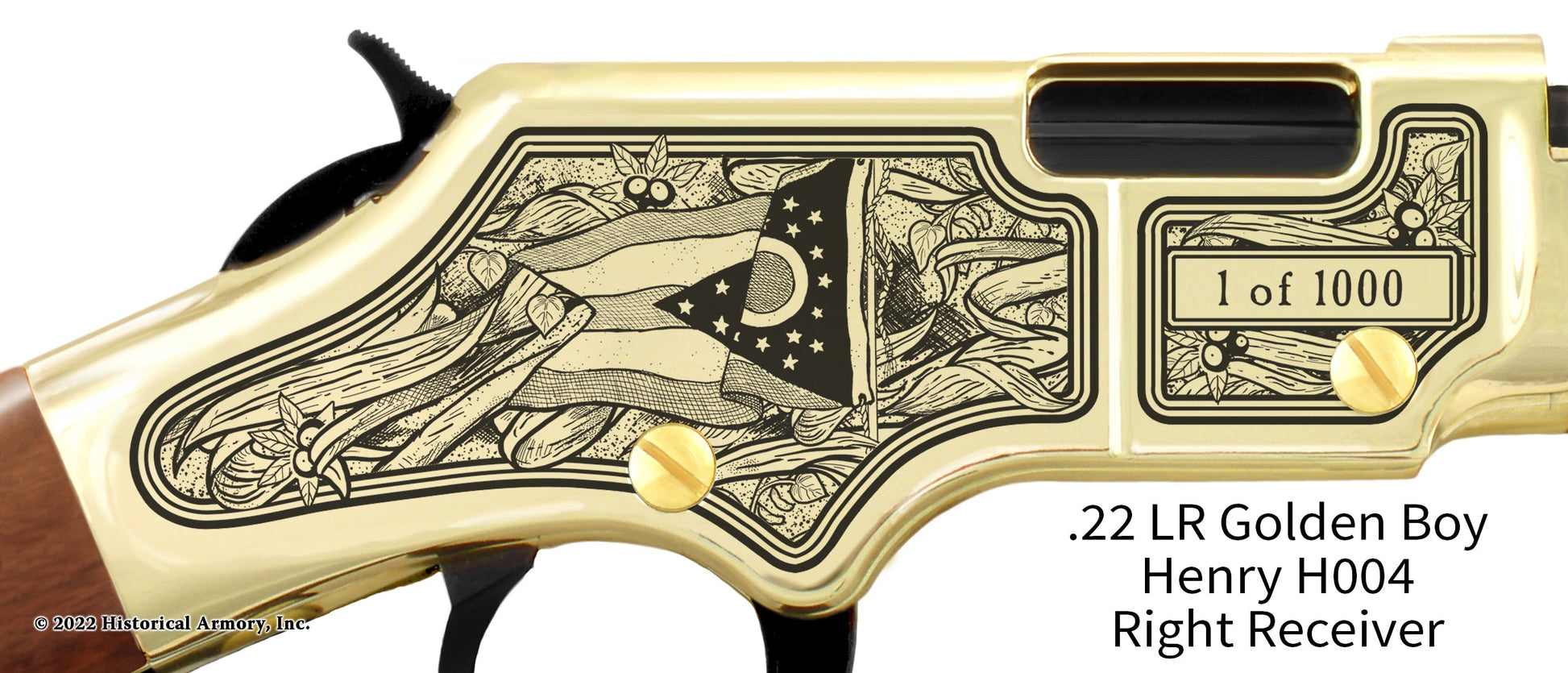 The Ohio Agricultural Heritage Limited Edition Rifle is available on the affordable, American-made Henry .22LR (H001), Golden Boy (H004), Big Boy (H006G, H006GC, or H006GM), and .30-30 (H009BG) models. Each fully functional rifle is individually numbered and includes space on the American walnut buttstock for personalization, providing a unique opportunity to create your own treasured family heirloom that will be passed down for generations.