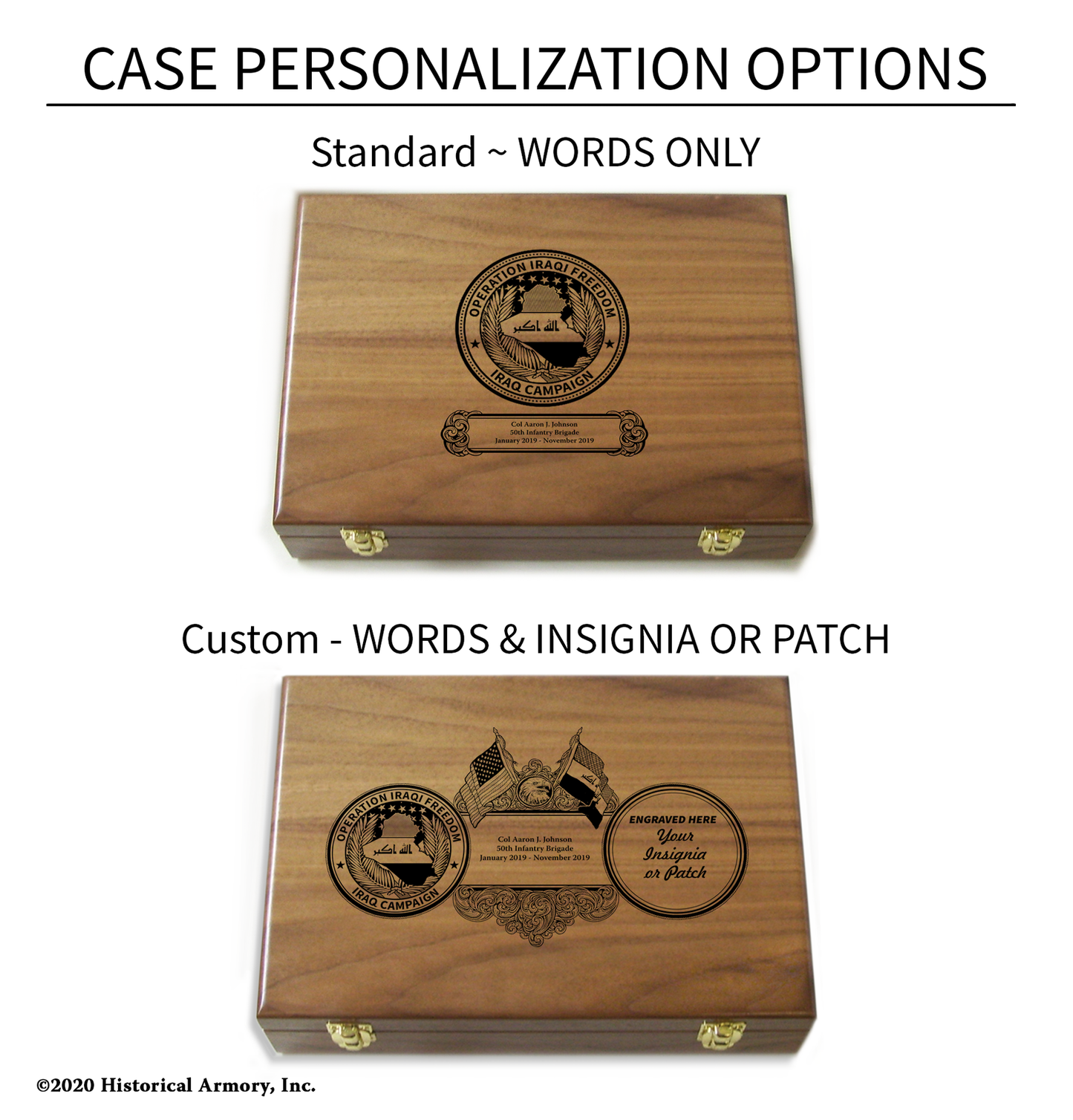 In honor of the brave men and women in the United States Armed Forces who have served with distinction in the Iraq campaign, Historical Armory is proud to introduce Operation Iraqi Freedom Edition 1911 pistol. Service members from all branches of the United States Armed Forces now have a durable platform to create a lasting reminder of their accomplishments during their service overseas. Family and friends can also use this pistol to thank a service member for their selfless sacrifice, or to pay tribute to a soldier who is currently deployed or has served past deployments overseas.
