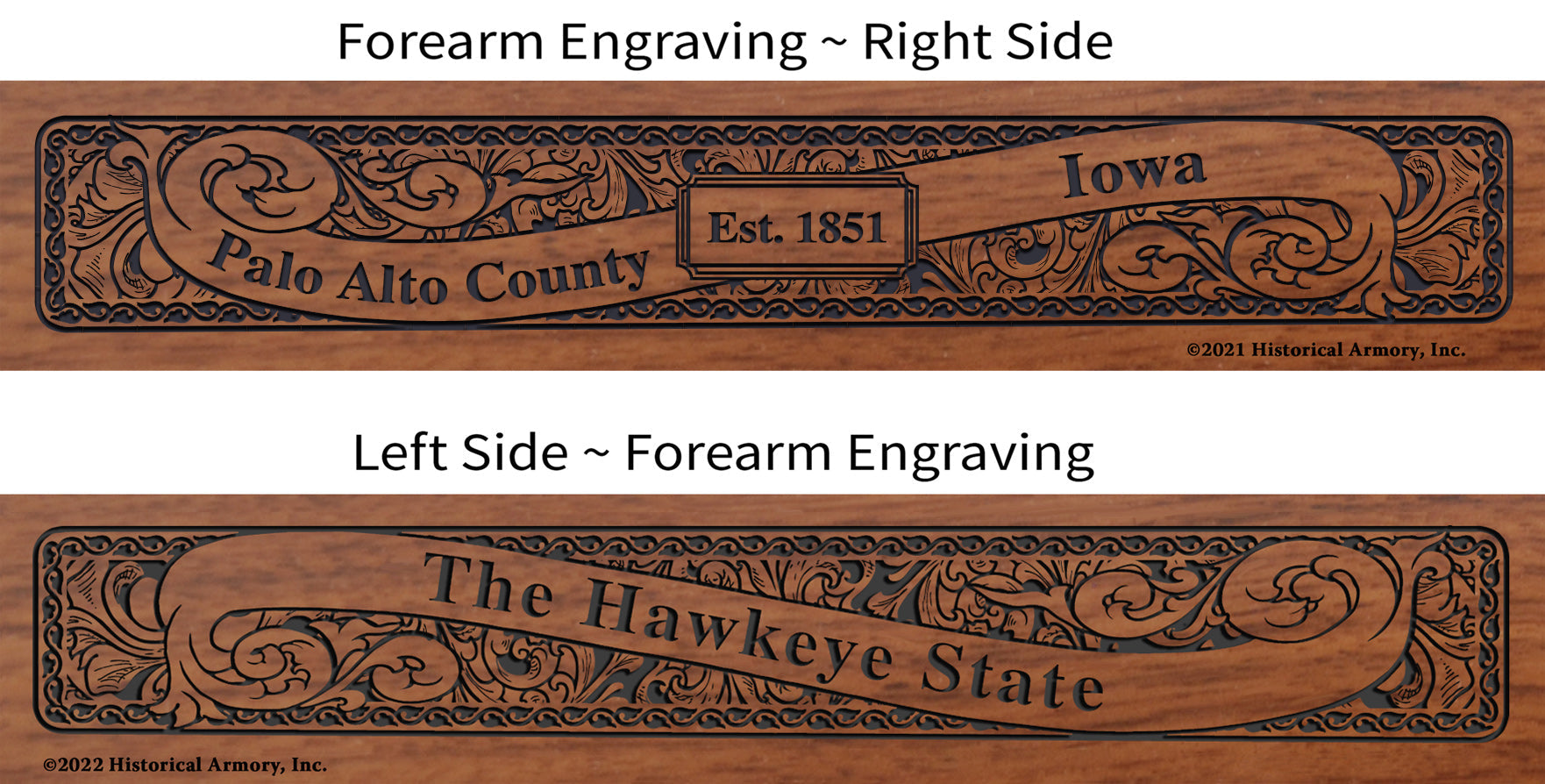 In honor of your county's rich historical legacy, Historical Armory is proud to present the Palo Alto County Iowa Limited Historical Edition Rifle. Produced on the affordable, American-made Henry rifles, the Palo Alto County Iowa Limited Historical Edition rifle combines meticulous research, original artwork, and finely detailed engraving to celebrate the history of Palo Alto County. There will only be 25 Palo Alto County Iowa rifle sets ever produced by Historical Armory. Purchase each model separately or all available rifle models together for a complete limited edition set.