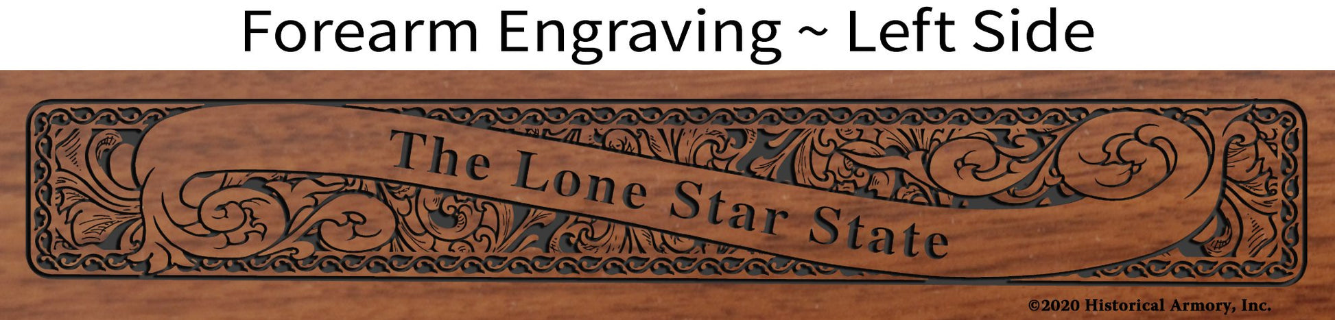 - Detailed engraving on both sides of the American walnut forearm, with the name and establishment date of your county on the right side and your state name and nickname on the left side.