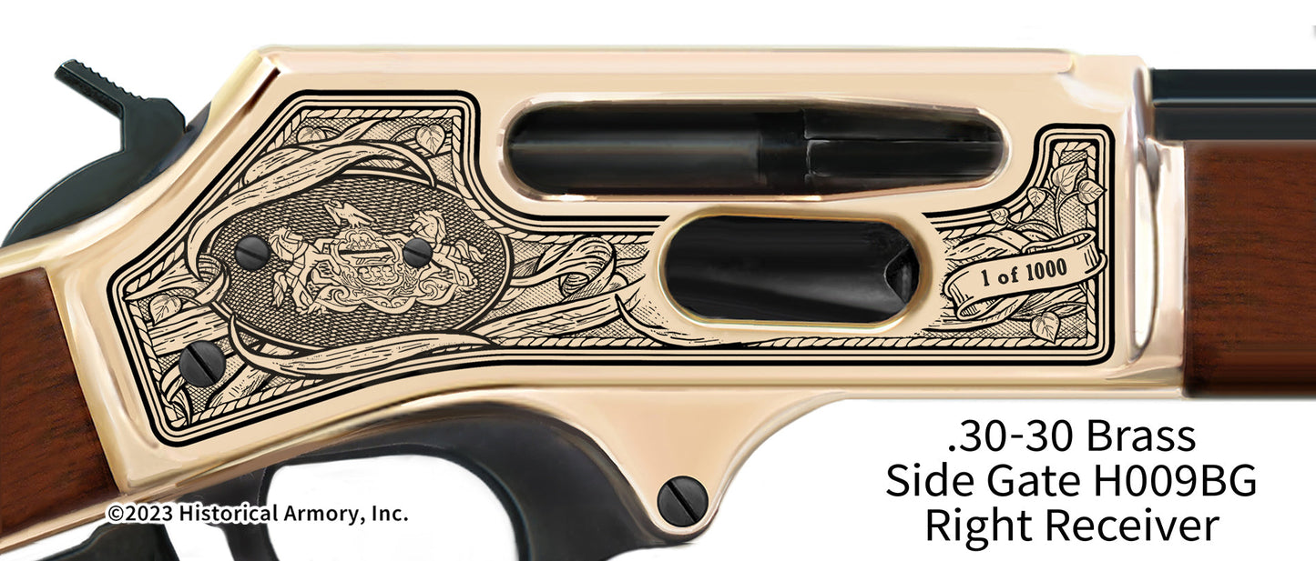 Renowned for their durability and solid construction, Henry rifles offer you a welcome shelter from the planned mechanical obsolescence so common in modern products these days. A well-maintained Henry will continue to perform as designed for generations to come, perhaps even one day becoming a treasured family heirloom for your descendants. Start your own tradition of lasting permanence today with the Pennsylvania Agricultural Heritage Limited Edition rifle, available only from Historical Armory.