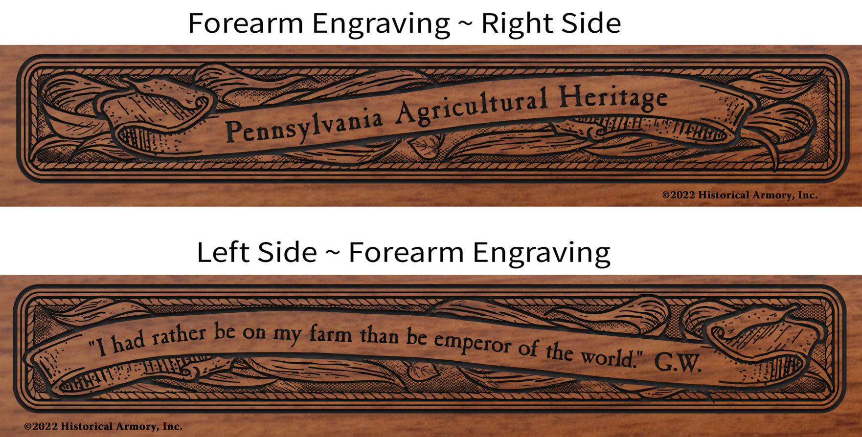 In honor of the dedicated farmers, who for generations have worked the rich soil of Pennsylvania, Historical Armory is proud to present the Pennsylvania Agricultural Heritage Limited Edition Rifle. Featuring original artwork and highly-detailed laser engraving, the Pennsylvania Agricultural Heritage Limited Edition Rifle celebrates the enduring historical legacy of agriculture in Pennsylvania.