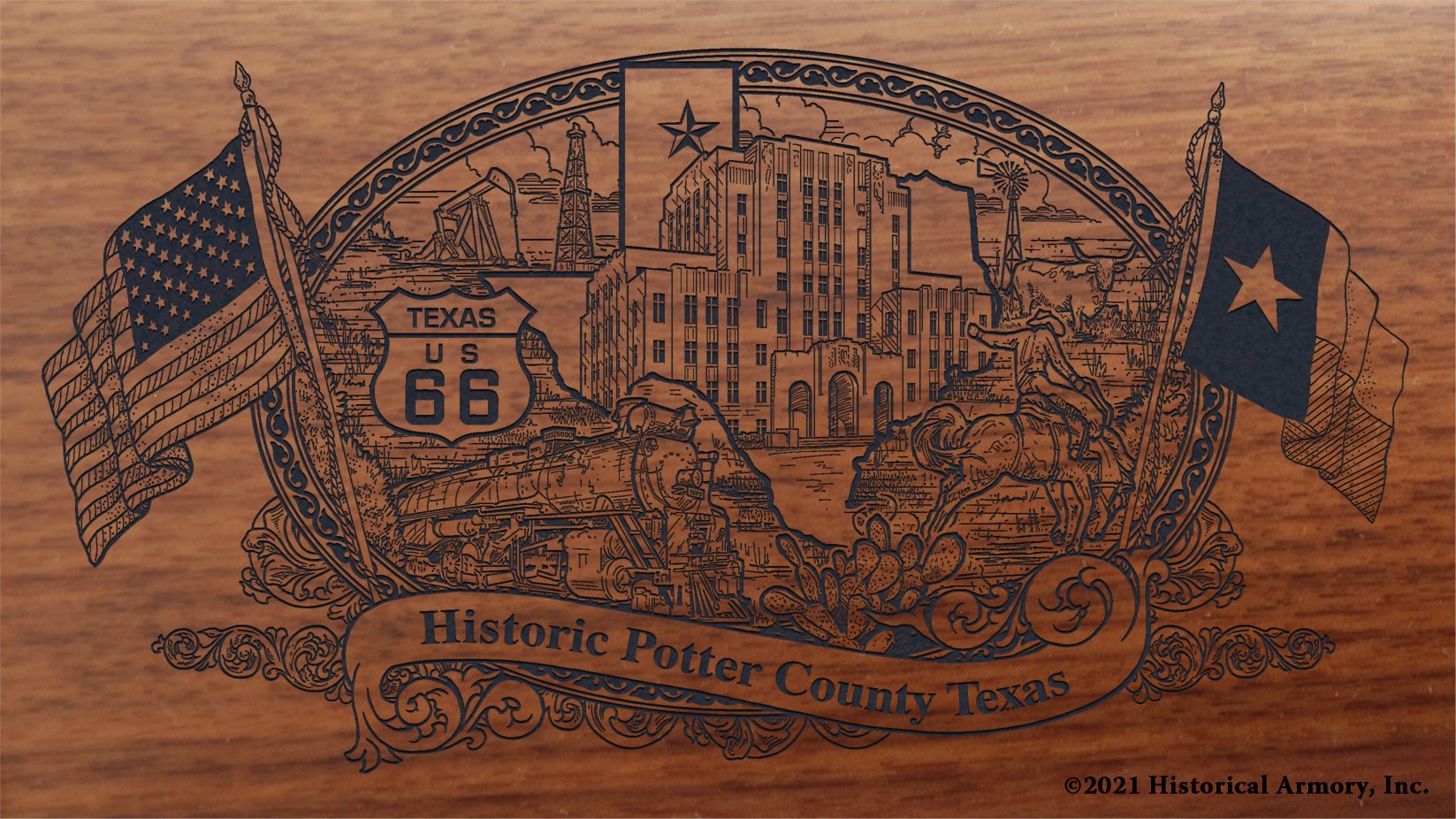 In honor of your county's rich historical legacy, Historical Armory is proud to present the Potter County Texas Limited Historical Edition Rifle. Produced on the affordable, American-made Henry .22 LR rifle (Model H001 & H004) and .30-30 (Model H009BG), the Potter County Texas Limited Historical Edition rifle combines meticulous research, original artwork, and finely detailed engraving to celebrate the history of Potter County. There will only be 50 Potter County Texas rifle sets ever produced by Historical Armory. Purchase each model separately or all available rifle models together for a complete limited edition set.