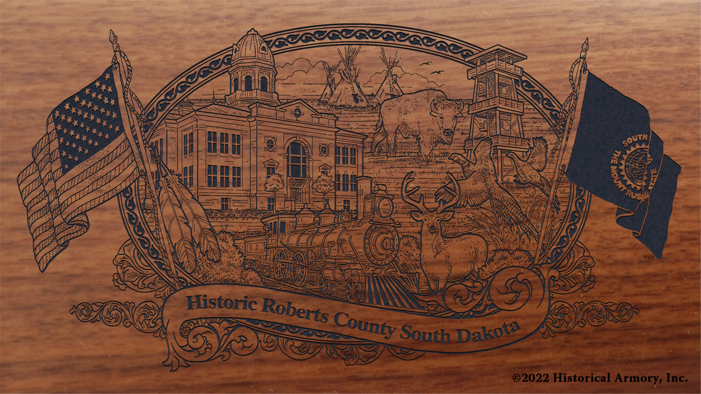 In honor of your county's rich historical legacy, Historical Armory is proud to present the Roberts County South Dakota Limited Historical Edition Rifle. Produced on the affordable, American-made Henry rifles, the Roberts County South Dakota Limited Historical Edition rifle combines meticulous research, original artwork, and finely detailed engraving to celebrate the history of Roberts County. There will only be 25 Roberts County South Dakota rifle sets ever produced by Historical Armory. Purchase each model separately or all available rifle models together for a complete limited edition set.