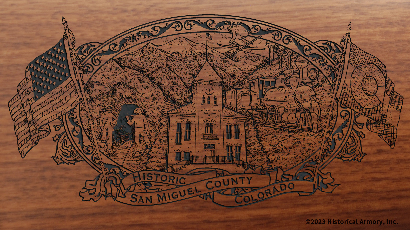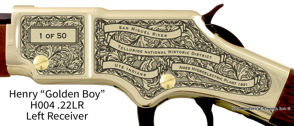 In honor of your county's rich historical legacy, Historical Armory is proud to present the San Miguel County Colorado Limited Historical Edition Rifle. Produced on the affordable, American-made Henry .22 LR rifle (Model H001 & H004) and .30-30 (Model H009BG), the San Miguel County Colorado Limited Historical Edition rifle combines meticulous research, original artwork, and finely detailed engraving to celebrate the history of San Miguel County. There will only be 50 San Miguel County Colorado rifle sets ever produced by Historical Armory. Purchase each model separately or all available rifle models together for a complete limited edition set.