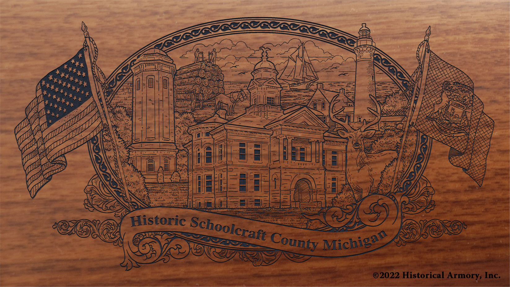 In honor of your county's rich historical legacy, Historical Armory is proud to present the Schoolcraft County Michigan Limited Historical Edition Rifle. Produced on the affordable, American-made Henry rifles, the Schoolcraft County Michigan Limited Historical Edition rifle combines meticulous research, original artwork, and finely detailed engraving to celebrate the history of Schoolcraft County. There will only be 25 Schoolcraft County Michigan rifle sets ever produced by Historical Armory. Purchase each model separately or all available rifle models together for a complete limited edition set.