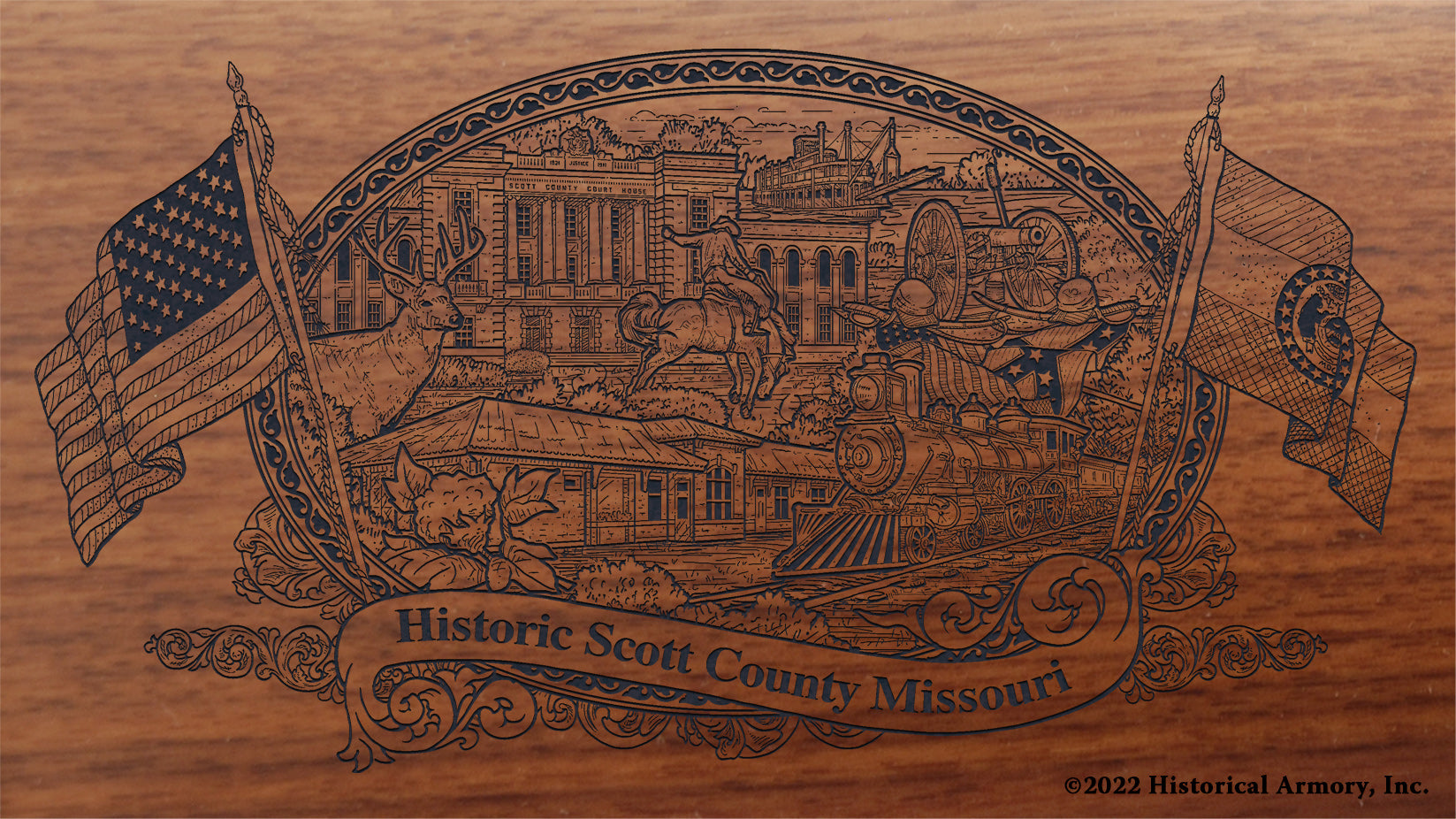 In honor of your county's rich historical legacy, Historical Armory is proud to present the Scott County Missouri Limited Historical Edition Rifle. Produced on the affordable, American-made Henry rifles, the Scott County Missouri Limited Historical Edition rifle combines meticulous research, original artwork, and finely detailed engraving to celebrate the history of Scott County. There will only be 25 Scott County Missouri rifle sets ever produced by Historical Armory. Purchase each model separately or all available rifle models together for a complete limited edition set.