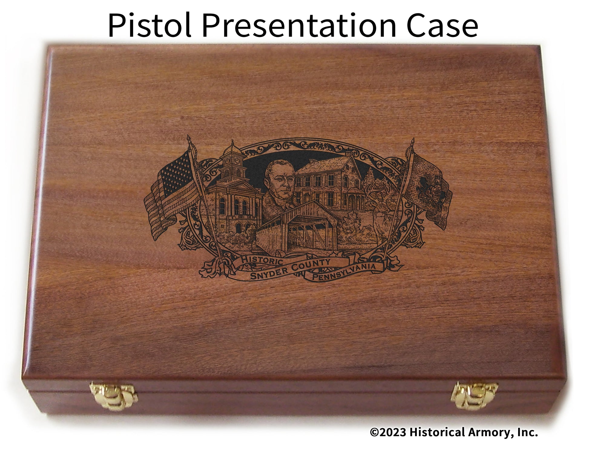 In honor of your county's rich historical legacy, Historical Armory is proud to present the Snyder County Pennsylvania 1911 Limited Edition. The Snyder County Pennsylvania 1911 Limited Historical Edition pistol combines meticulous research, original artwork, and finely detailed engraving to celebrate the history of Snyder County. There will only be 50 Snyder County Pennsylvania pistols ever produced by Historical Armory!