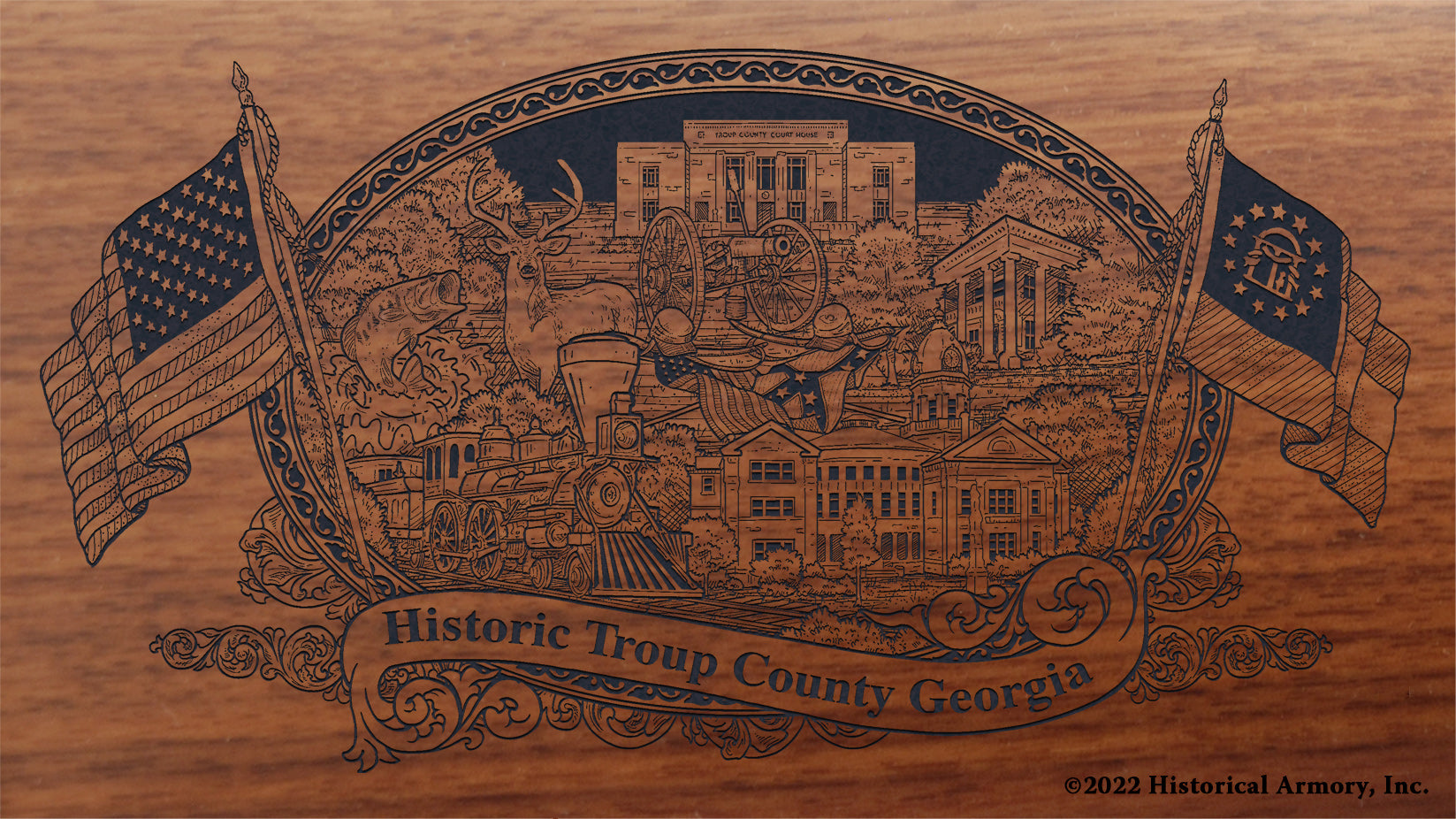In honor of your county's rich historical legacy, Historical Armory is proud to present the Troup County Georgia Limited Historical Edition Rifle. Produced on the affordable, American-made Henry .22 LR rifle (Model H001 & H004) and .30-30 (Model H009BG), the Troup County Georgia Limited Historical Edition rifle combines meticulous research, original artwork, and finely detailed engraving to celebrate the history of Troup County. There will only be 25 Troup County Georgia rifle sets ever produced by Historical Armory. Purchase each model separately or all available rifle models together for a complete limited edition set.