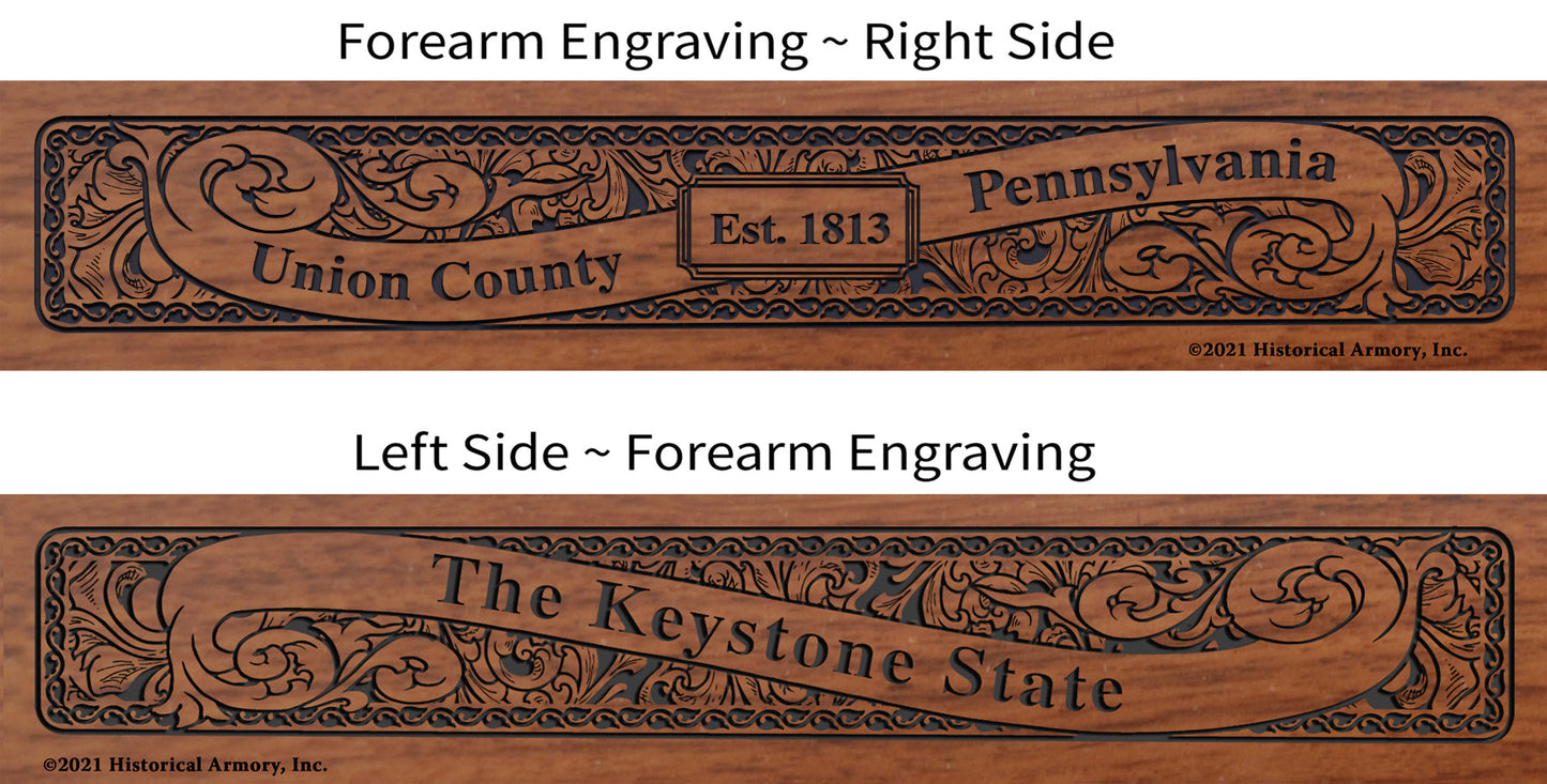 Renowned for their durability and solid construction, Henry rifles offer you a welcome shelter from the planned mechanical obsolescence so common in modern products these days. Well-maintained, they will continue to perform as designed for generations to come, perhaps even one day becoming a treasured family heirloom for your descendants. Start your own tradition of lasting permanence today with the Union County Pennsylvania Engraved Rifle, available only from Historical Armory!