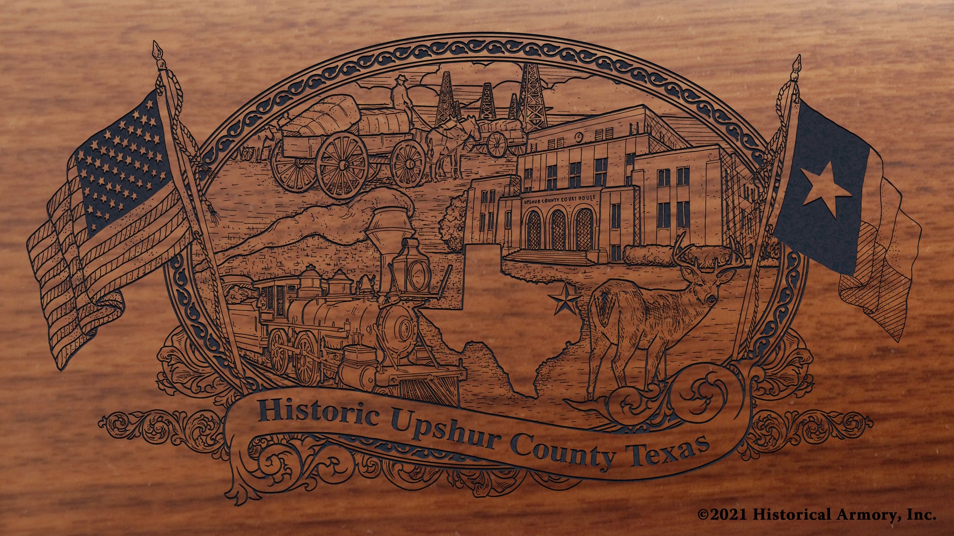 In honor of your county's rich historical legacy, Historical Armory is proud to present the Upshur County Texas Limited Historical Edition Rifle. Produced on the affordable, American-made Henry .22 LR rifle (Model H001 & H004) and .30-30 (Model H009BG), the Upshur County Texas Limited Historical Edition rifle combines meticulous research, original artwork, and finely detailed engraving to celebrate the history of Upshur County. There will only be 25 Upshur County Texas rifle sets ever produced by Historical Armory. Purchase each model separately or all available rifle models together for a complete limited edition set.