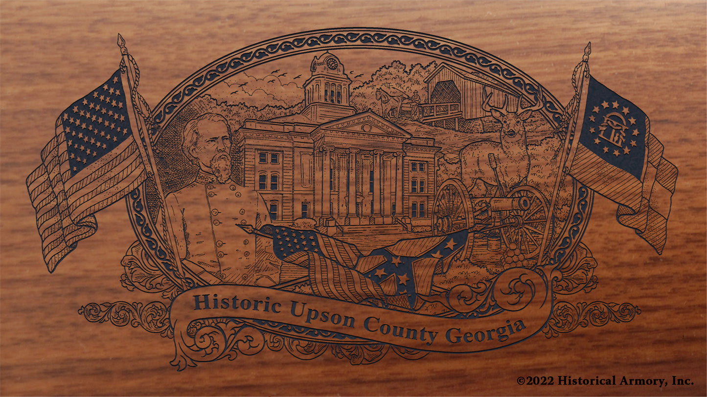In honor of your county's rich historical legacy, Historical Armory is proud to present the Upson County Georgia Limited Historical Edition Rifle. Produced on the affordable, American-made Henry .22 LR rifle (Model H001 & H004) and .30-30 (Model H009BG), the Upson County Georgia Limited Historical Edition rifle combines meticulous research, original artwork, and finely detailed engraving to celebrate the history of Upson County. There will only be 25 Upson County Georgia rifle sets ever produced by Historical Armory. Purchase each model separately or all available rifle models together for a complete limited edition set.