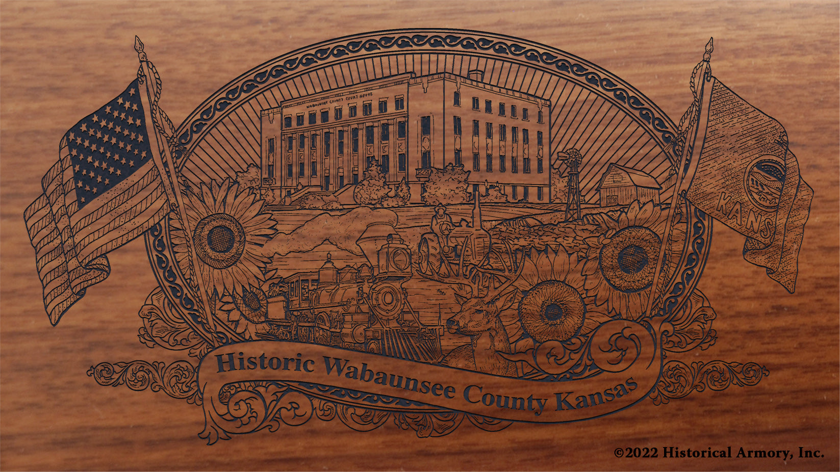 In honor of your county's rich historical legacy, Historical Armory is proud to present the Wabaunsee County Kansas Limited Historical Edition Rifle. Produced on the affordable, American-made Henry rifles, the Wabaunsee County Kansas Limited Historical Edition rifle combines meticulous research, original artwork, and finely detailed engraving to celebrate the history of Wabaunsee County. There will only be 25 Wabaunsee County Kansas rifle sets ever produced by Historical Armory. Purchase each model separately or all available rifle models together for a complete limited edition set.