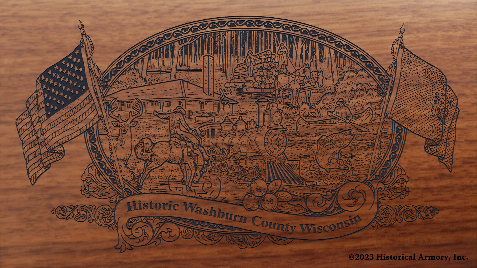 In honor of your county's rich historical legacy, Historical Armory is proud to present the Washburn County Wisconsin Limited Historical Edition Rifle. Produced on the affordable, American-made Henry rifles, the Washburn County Wisconsin Limited Historical Edition rifle combines meticulous research, original artwork, and finely detailed engraving to celebrate the history of Washburn County. There will only be 50 Washburn County Wisconsin rifle sets ever produced by Historical Armory. Purchase each model separately or all available rifle models together for a complete limited edition set.