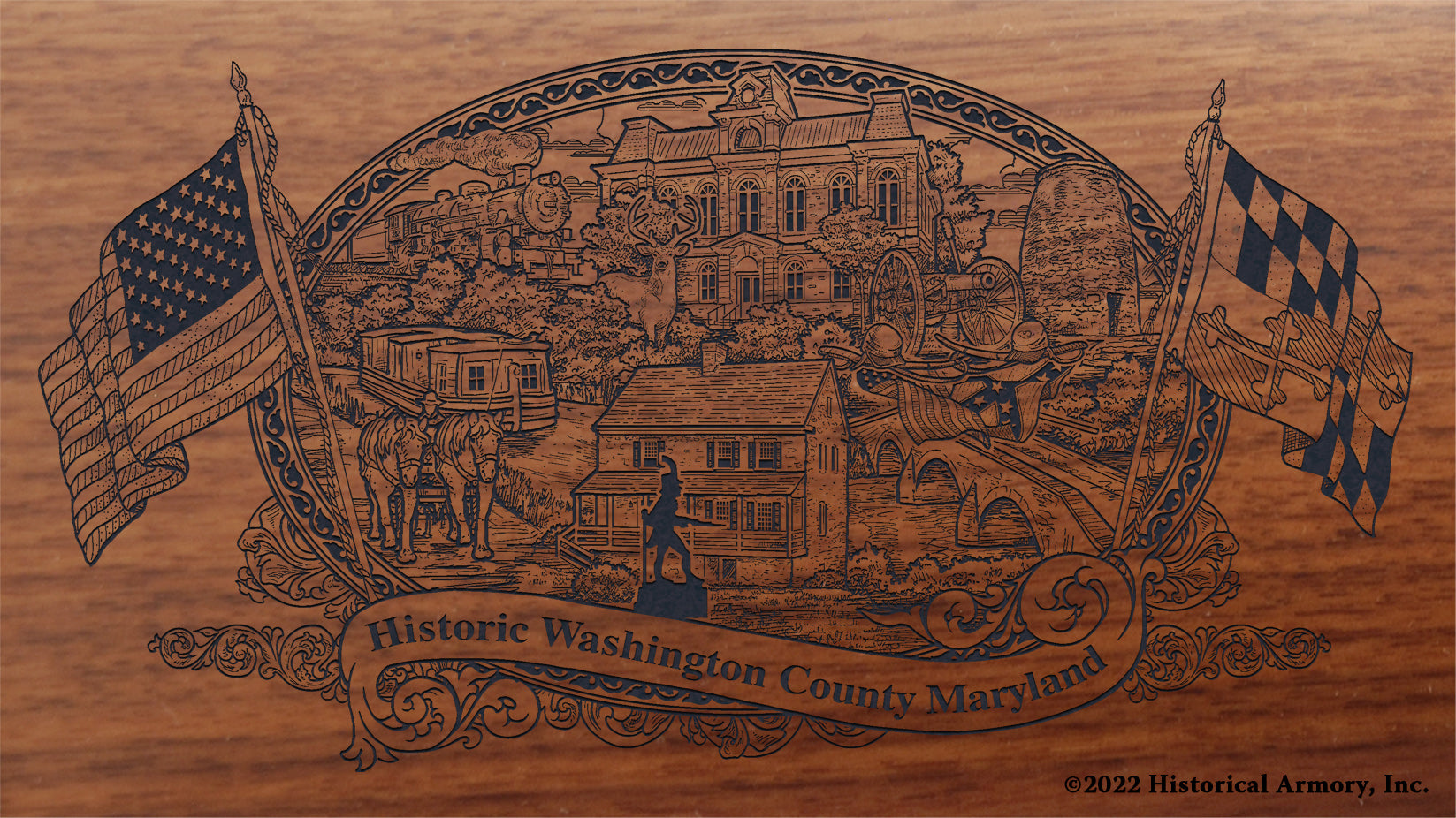 In honor of your county's rich historical legacy, Historical Armory is proud to present the Washington County Maryland Limited Historical Edition Rifle. Produced on the affordable, American-made Henry rifles, the Washington County Maryland Limited Historical Edition rifle combines meticulous research, original artwork, and finely detailed engraving to celebrate the history of Washington County. There will only be 50 Washington County Maryland rifle sets ever produced by Historical Armory. Purchase each model separately or all available rifle models together for a complete limited edition set.