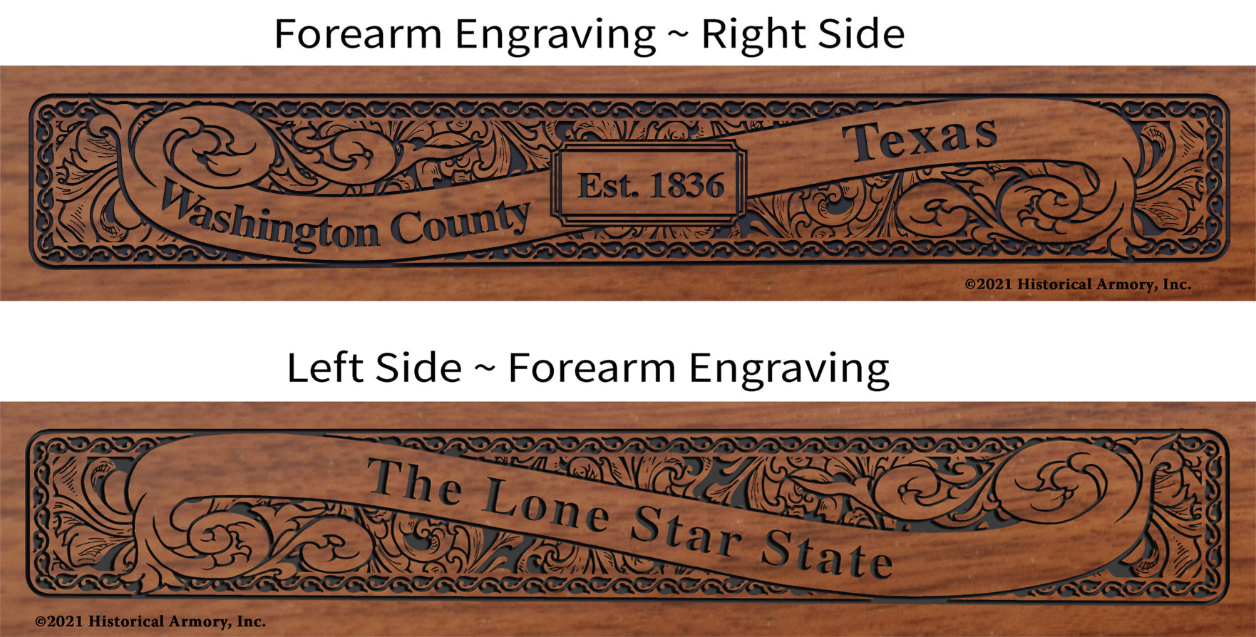 In honor of your county's rich historical legacy, Historical Armory is proud to present the Washington County Texas Limited Historical Edition Rifle. Produced on the affordable, American-made Henry .22 LR rifle (Model H001 & H004) and .30-30 (Model H009BG), the Washington County Texas Limited Historical Edition rifle combines meticulous research, original artwork, and finely detailed engraving to celebrate the history of Washington County. There will only be 25 Washington County Texas rifle sets ever produced by Historical Armory. Purchase each model separately or all available rifle models together for a complete limited edition set.