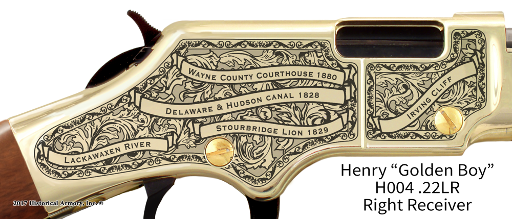 Renowned for their durability and solid construction, Henry rifles offer you a welcome shelter from the planned mechanical obsolescence so common in modern products these days. Well-maintained, they will continue to perform as designed for generations to come, perhaps even one day becoming a treasured family heirloom for your descendants. Start your own tradition of lasting permanence today with the Wayne County Pennsylvania Engraved Rifle, available only from Historical Armory!