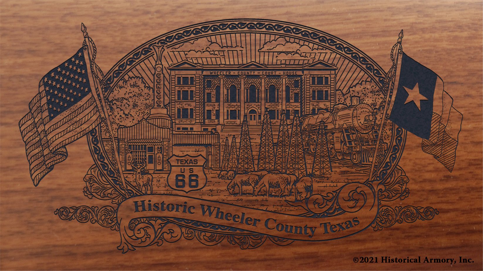In honor of your county's rich historical legacy, Historical Armory is proud to present the Wheeler County Texas Limited Historical Edition Rifle. Produced on the affordable, American-made Henry .22 LR rifle (Model H001 & H004) and .30-30 (Model H009BG), the Wheeler County Texas Limited Historical Edition rifle combines meticulous research, original artwork, and finely detailed engraving to celebrate the history of Wheeler County. There will only be 50 Wheeler County Texas rifle sets ever produced by Historical Armory. Purchase each model separately or all available rifle models together for a complete limited edition set.