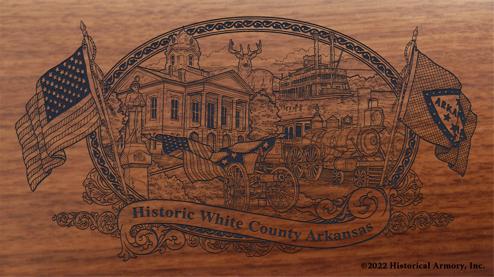 In honor of your county's rich historical legacy, Historical Armory is proud to present the White County Arkansas Limited Historical Edition Rifle. Produced on the affordable, American-made Henry rifles, the White County Arkansas Limited Historical Edition rifle combines meticulous research, original artwork, and finely detailed engraving to celebrate the history of White County. There will only be 25 White County Arkansas rifle sets ever produced by Historical Armory. Purchase each model separately or all available rifle models together for a complete limited edition set.