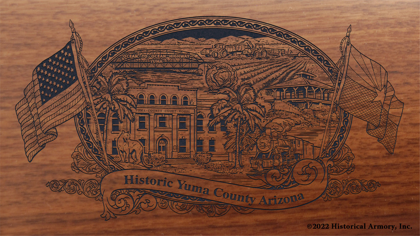 In honor of your county's rich historical legacy, Historical Armory is proud to present the Yuma County Arizona Limited Historical Edition Rifle. Produced on the affordable, American-made Henry rifles, the Yuma County Arizona Limited Historical Edition rifle combines meticulous research, original artwork, and finely detailed engraving to celebrate the history of Yuma County. There will only be 50 Yuma County Arizona rifle sets ever produced by Historical Armory. Purchase each model separately or all available rifle models together for a complete limited edition set.