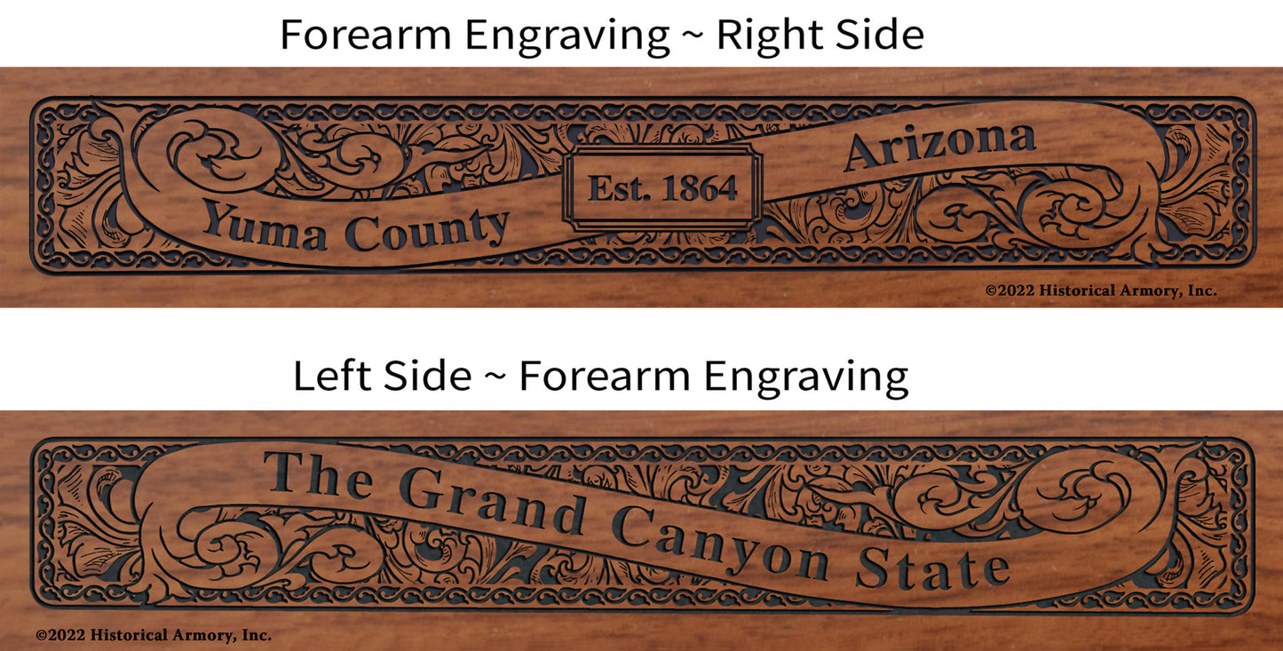 Renowned for their durability and solid construction, Henry rifles offer you a welcome shelter from the planned mechanical obsolescence so common in modern products these days. Well-maintained, they will continue to perform as designed for generations to come, perhaps even one day becoming a treasured family heirloom for your descendants. Start your own tradition of lasting permanence today with the Yuma County Arizona Engraved Rifle, available only from Historical Armory!